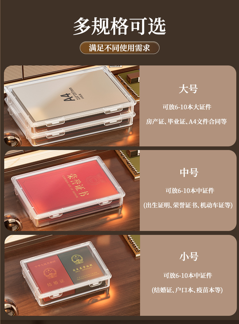 颜色 大号1个【可收纳A4证件文件//高透可视】,中号1个【可收纳出生证房产证】,小号1个【可收纳户口本结婚证】