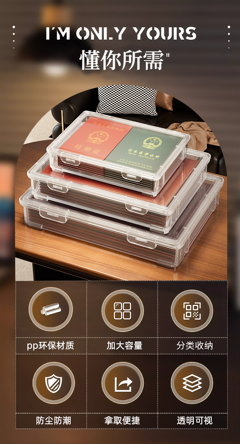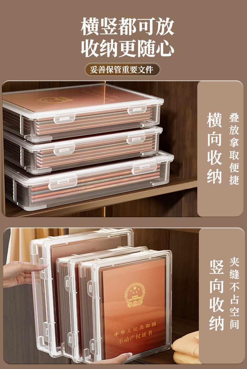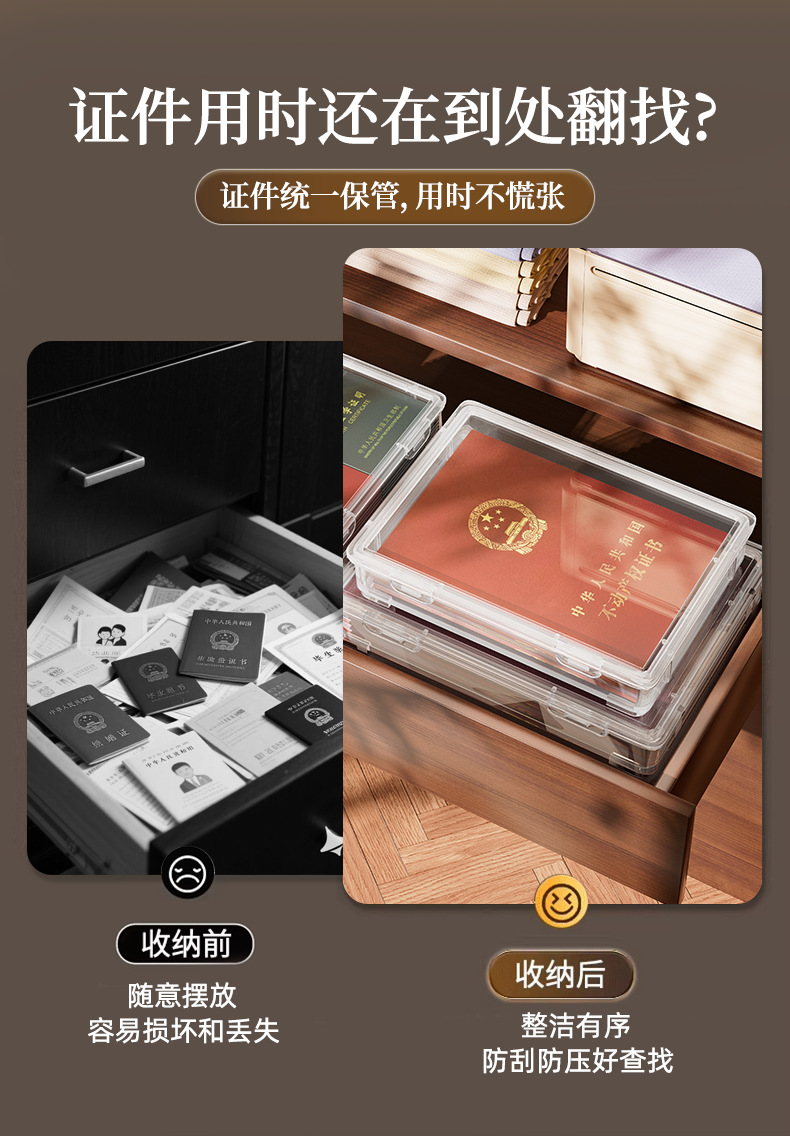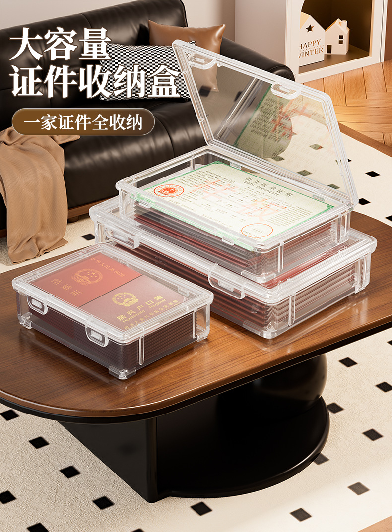 证件收纳盒出生证保护盒子家用透明a4大号装房产本重要文件证书箱