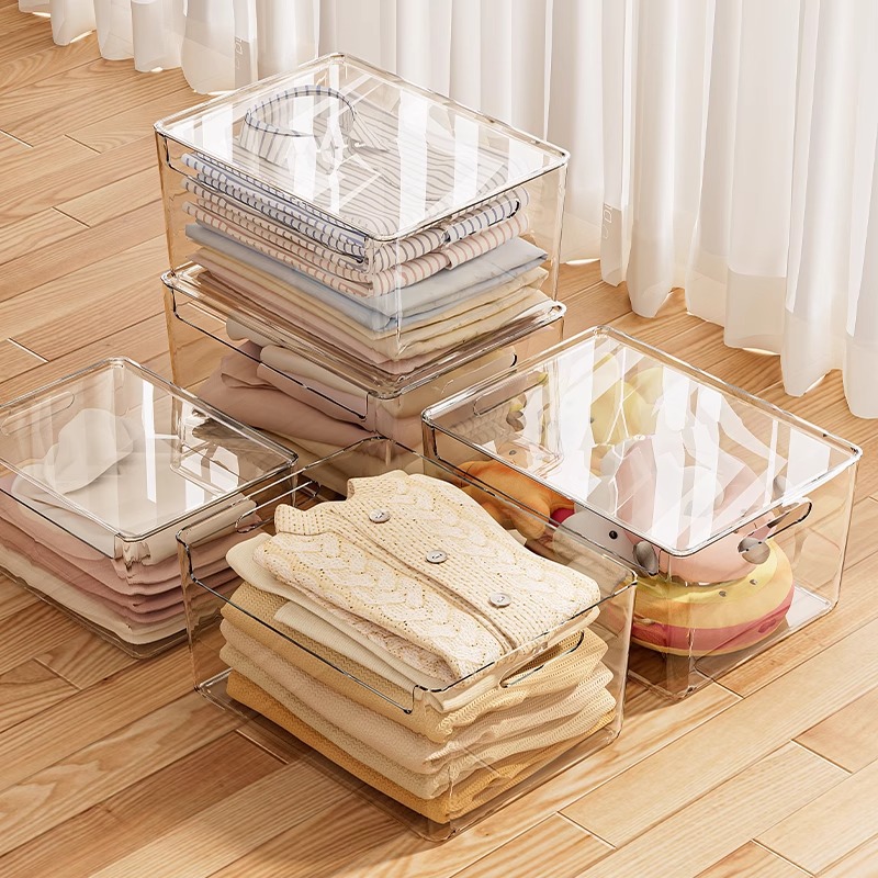 衣類収納ボックスアクリル家庭用大容量特大ワードローブ衣類収納バスケット透明長方形整理ボックス