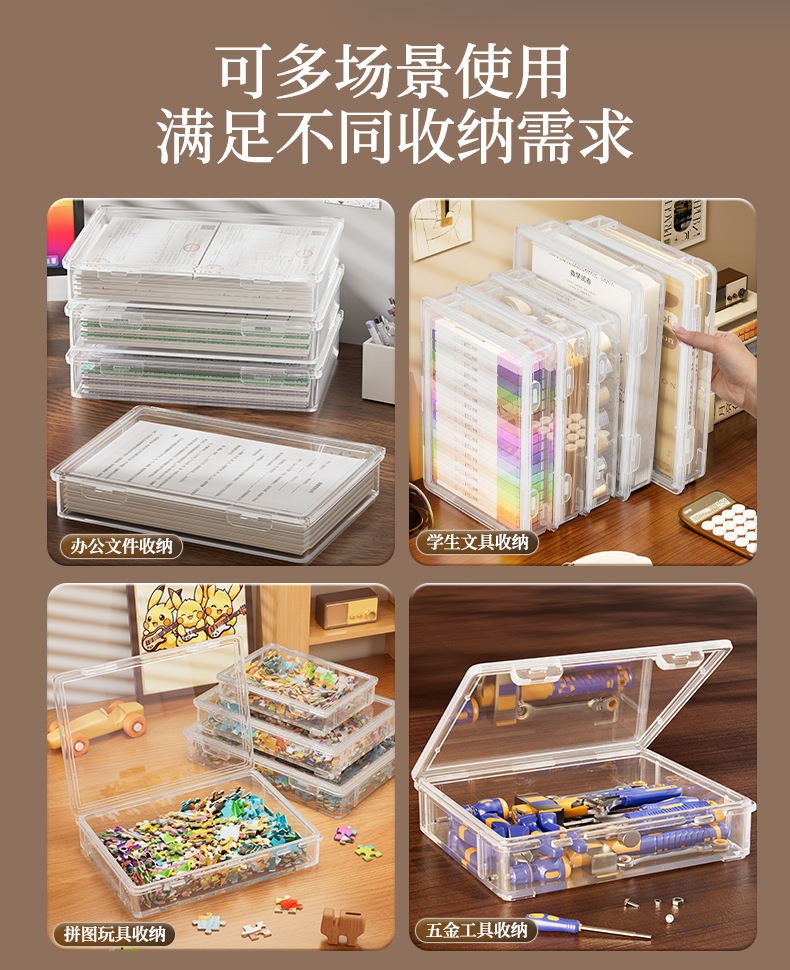 A4文件收纳盒透明证件档案整理盒子塑料防潮大号家用证书出生证箱