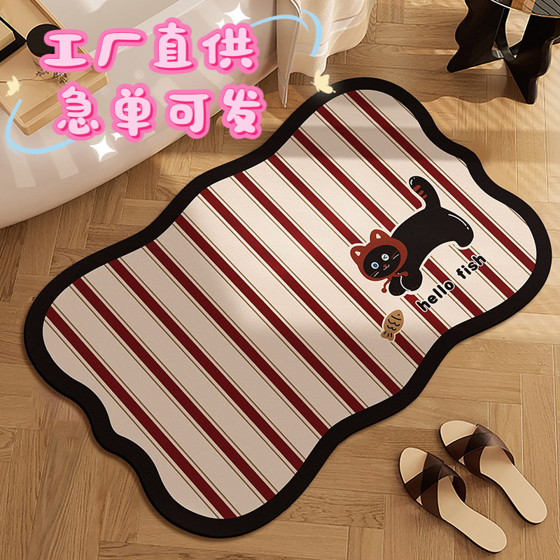 珪藻土吸水浴室マット、滑り止め付き玄関マット、汚れに強くお手入れ簡単、かわいいシリーズ