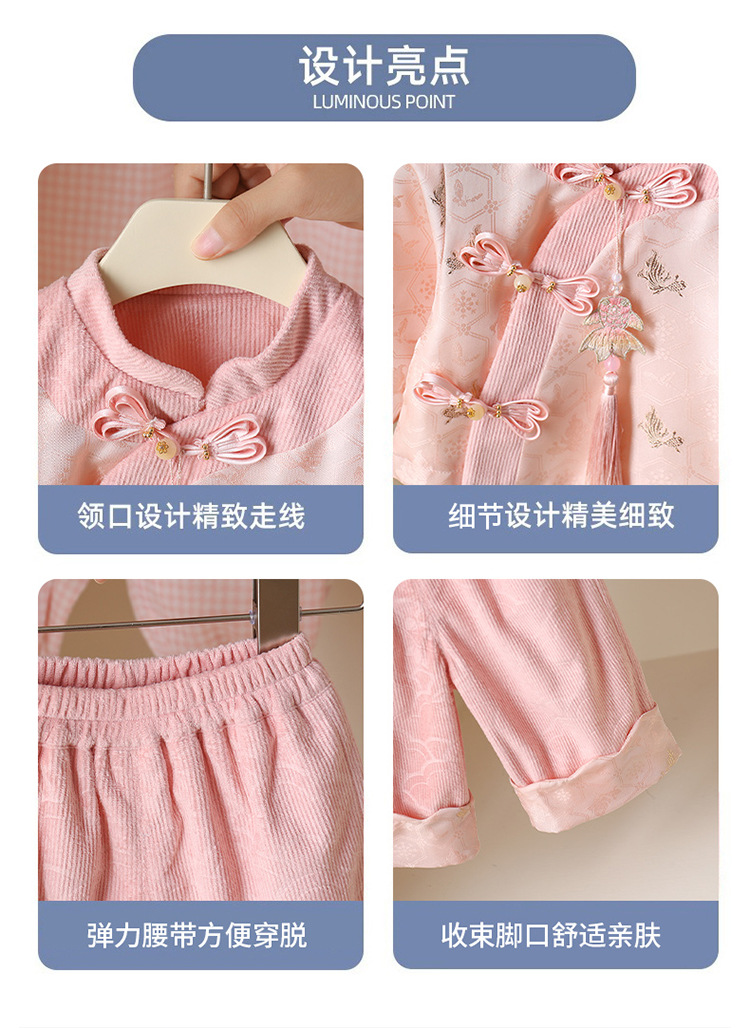 国风女童唐装套装秋冬装新款小童衣服龙凤宝宝加绒周岁礼服三件套