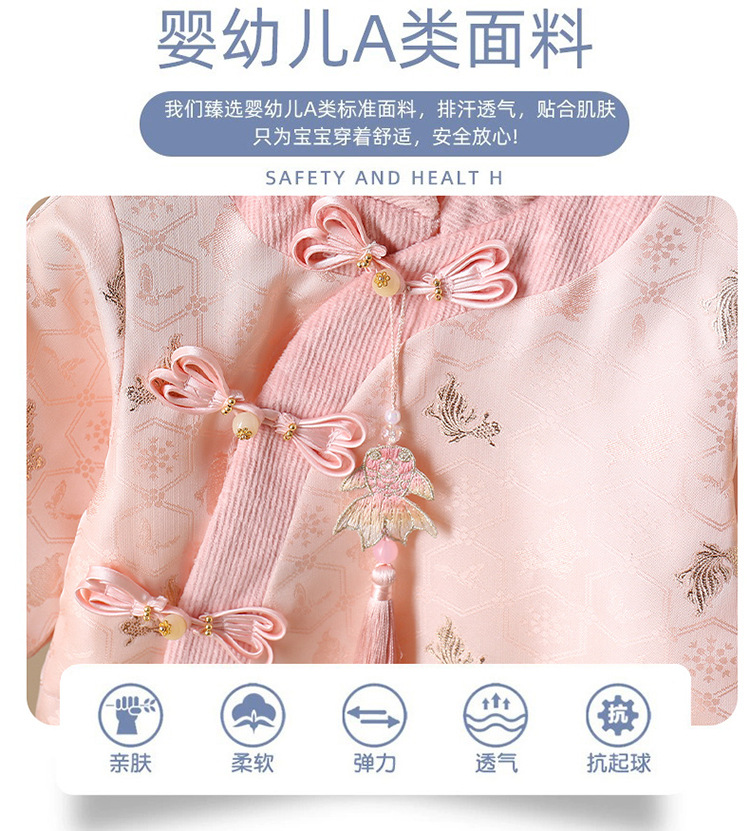 ベビー服冬のベルベットは綿の国風を挟んで満月の子供の誕生日に服を着て周のドレスをつかむ