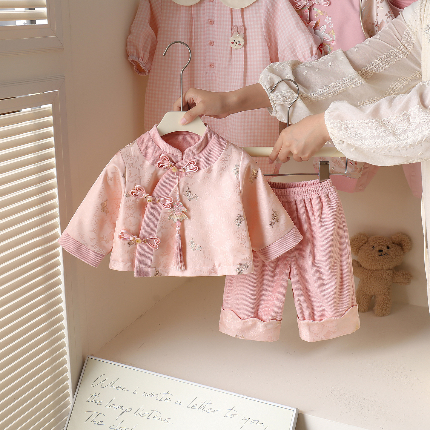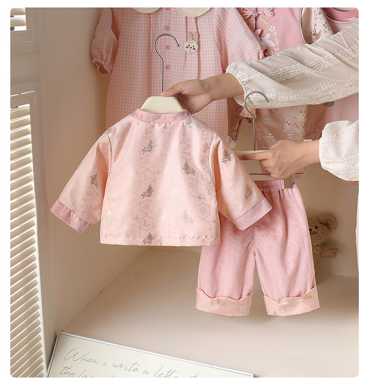 秋季女宝宝新中式国风两件套装百天周岁礼服喜庆女童唐装汉服古装