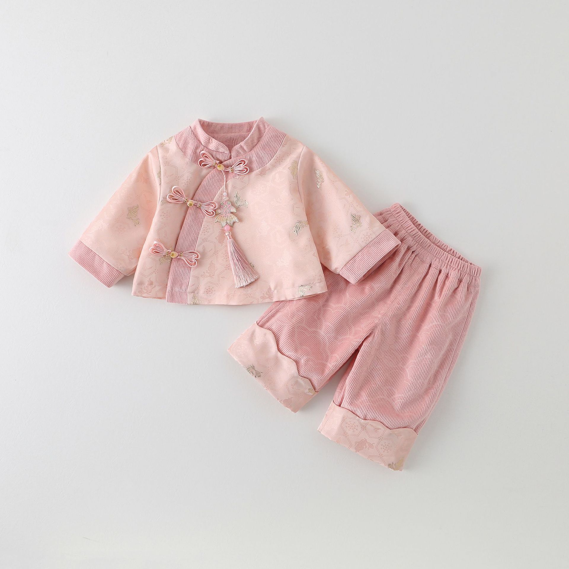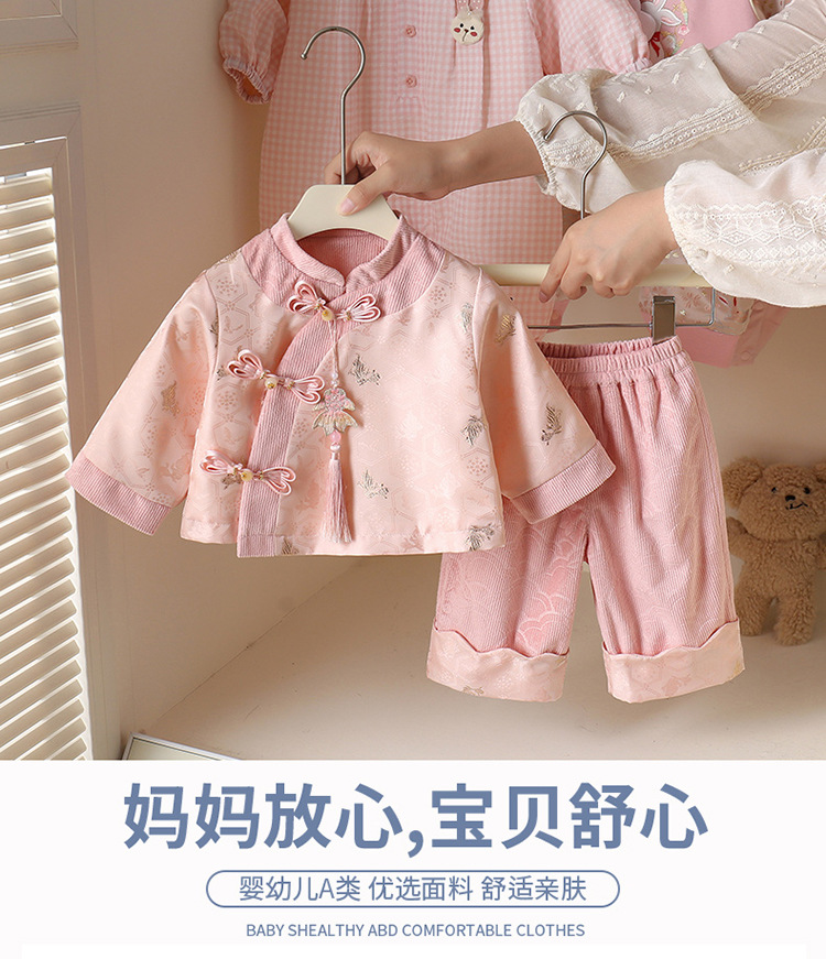 春秋新款女童汉服衣服宝宝生日周岁礼服婴儿中式唐装国风儿童套装