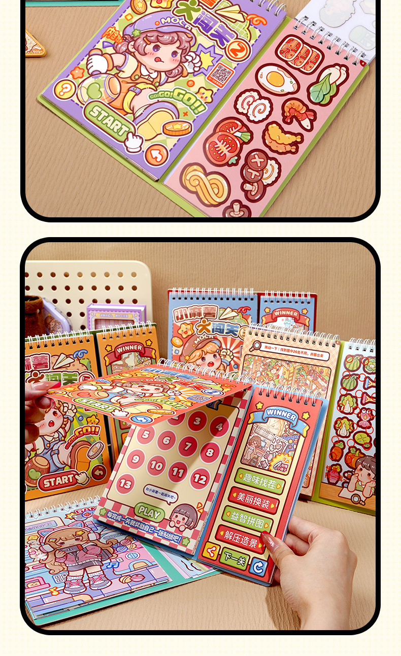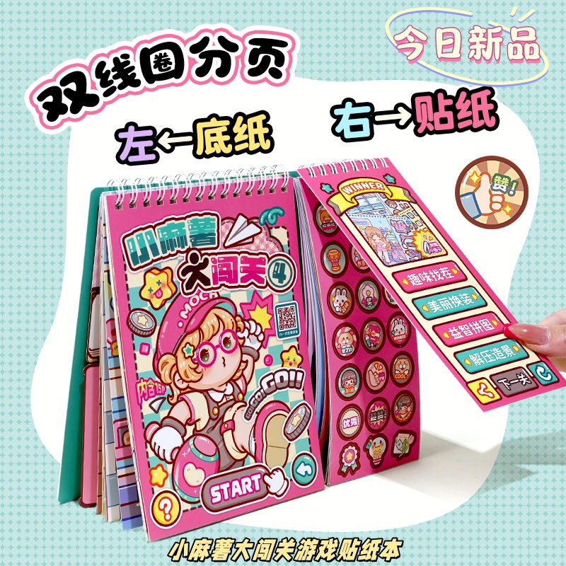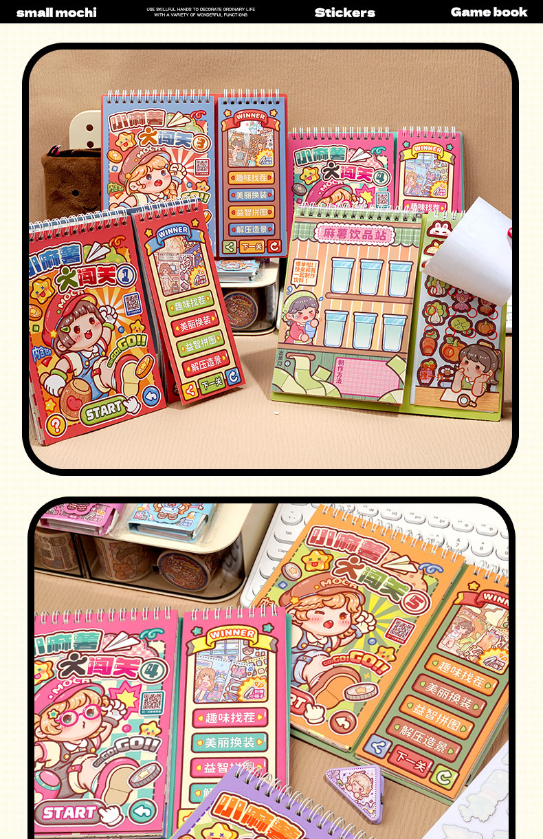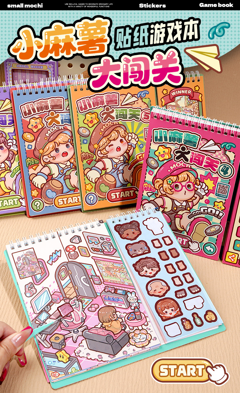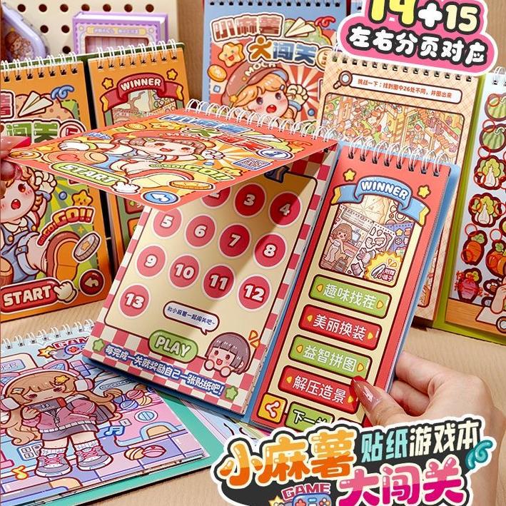 小麻薯闯关游戏贴纸本创意造景贴纸书儿童立体贴画解压手支持代发