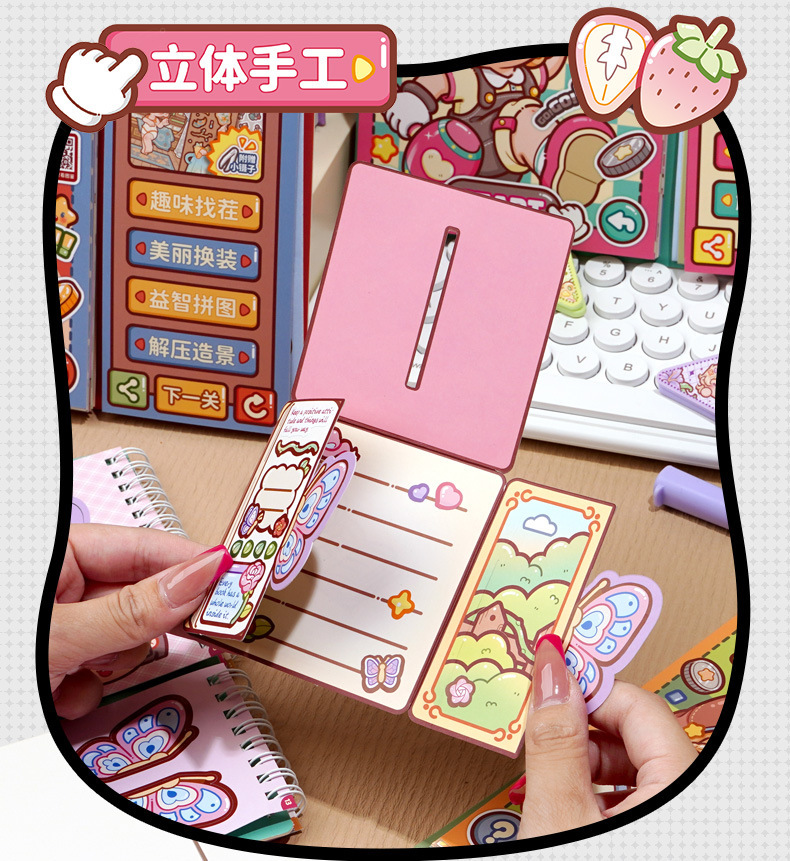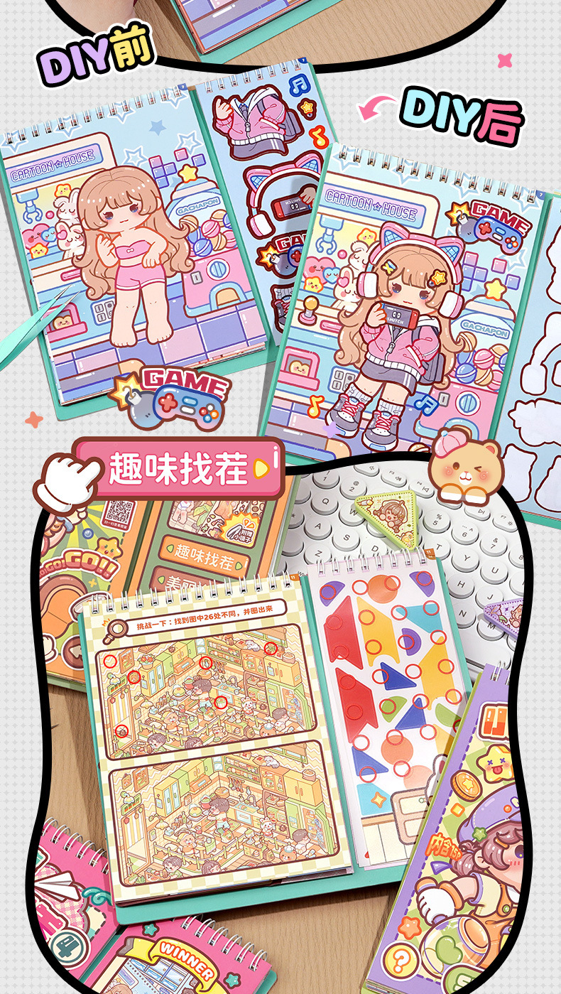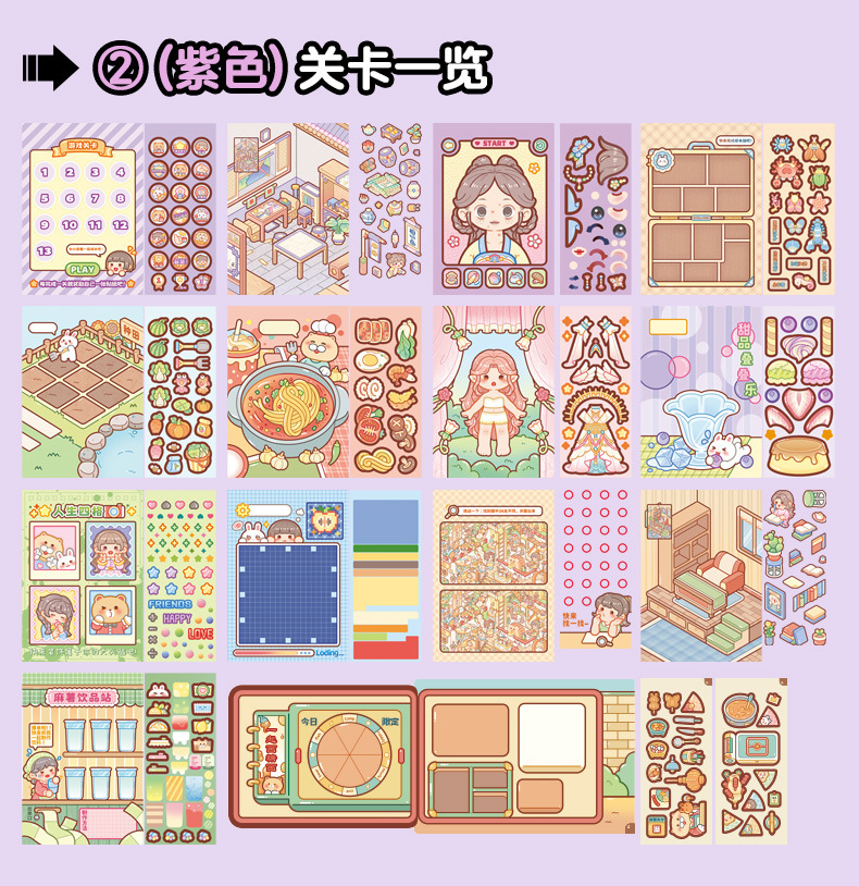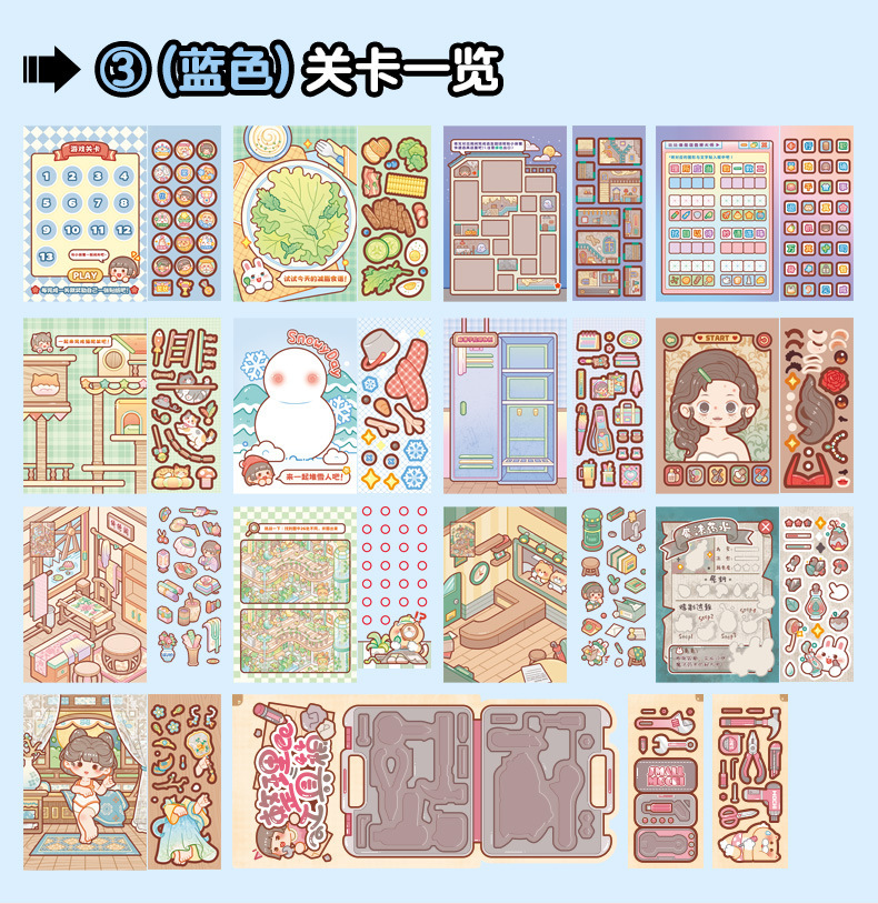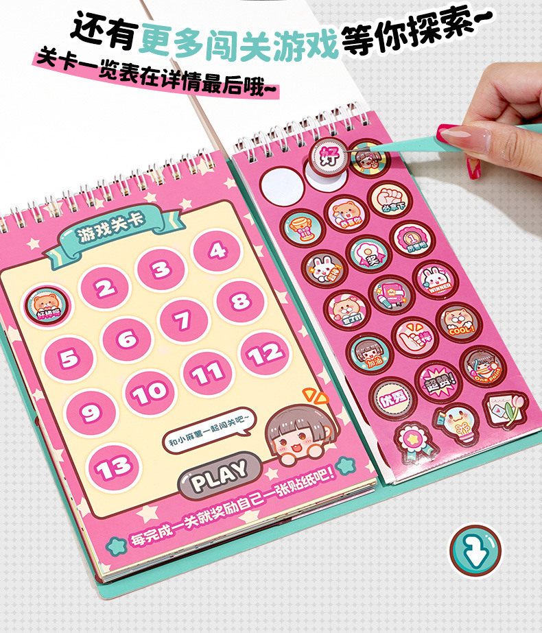 小麻薯闯关游戏贴纸本创意造景贴纸书儿童立体贴画解压手支持代发