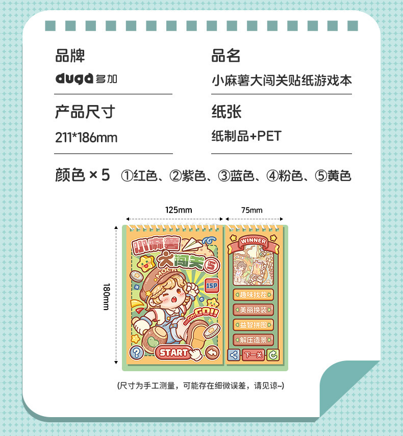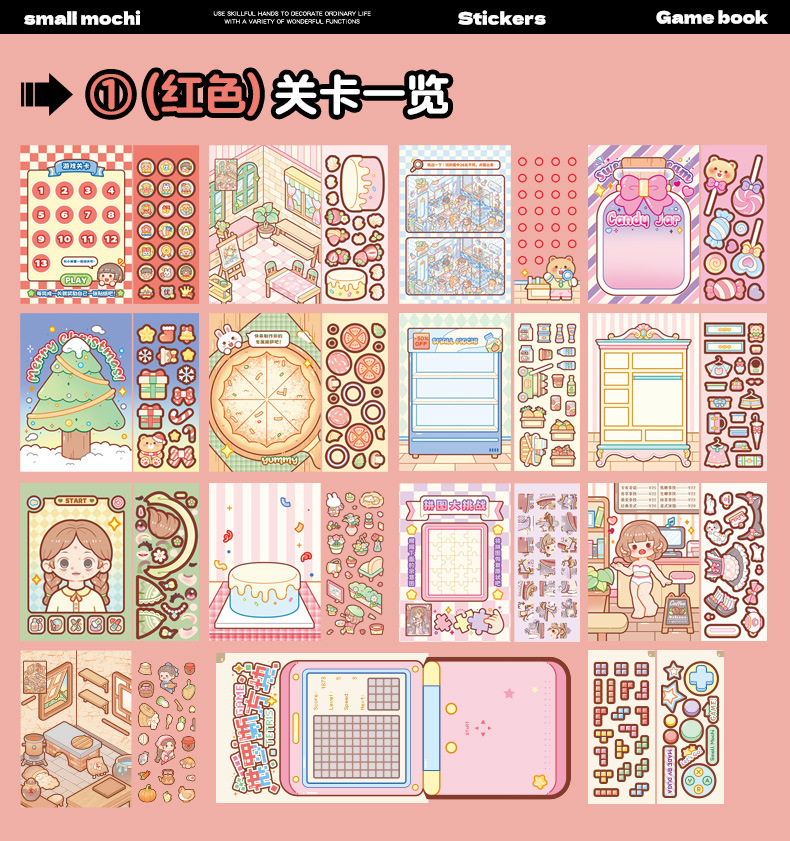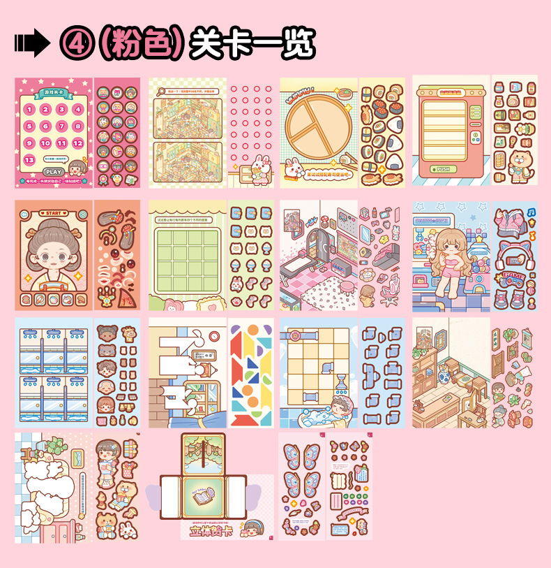 小麻薯闯关游戏贴纸书装饰小图案女孩立体贴画解压玩具免裁剪