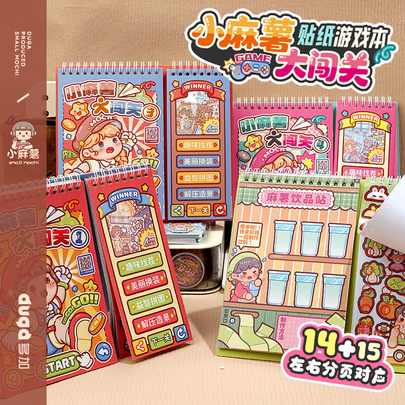 小麻薯大闯关游戏贴纸本儿童女孩免裁剪换装解压益智趣味手工书