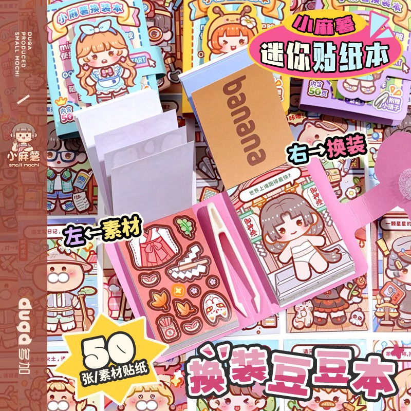 小麻薯换装贴纸迷你豆豆本可爱免裁剪手账贴纸创意场景换装贴纸本
