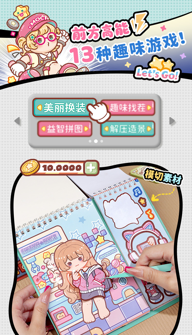 小麻薯闯关游戏贴纸本儿童女孩免裁剪换装解压益智趣味立体手工书