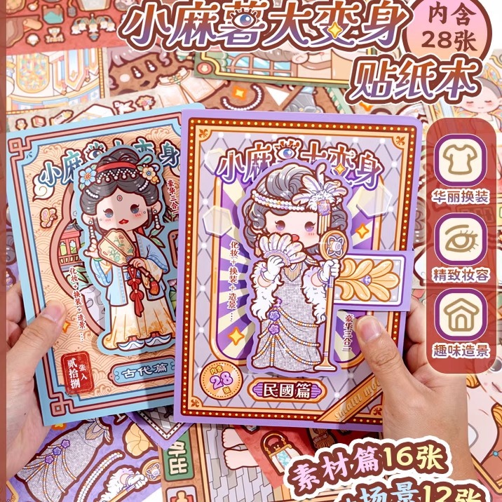 小麻薯大变身换装贴纸本装饰小图案女孩儿童玩具手帐贴画素材手工
