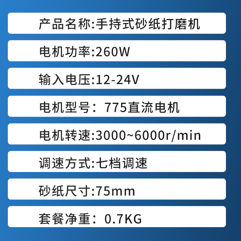 型号 3寸砂纸打磨机+20张砂纸,3寸打磨机+20张砂纸+3米延长线,2寸砂纸打磨机+20张砂纸,2寸打磨机+20张砂纸+3米延长线,1寸砂纸打磨机+20张砂纸,1寸打磨机+20张砂纸+3米延长线