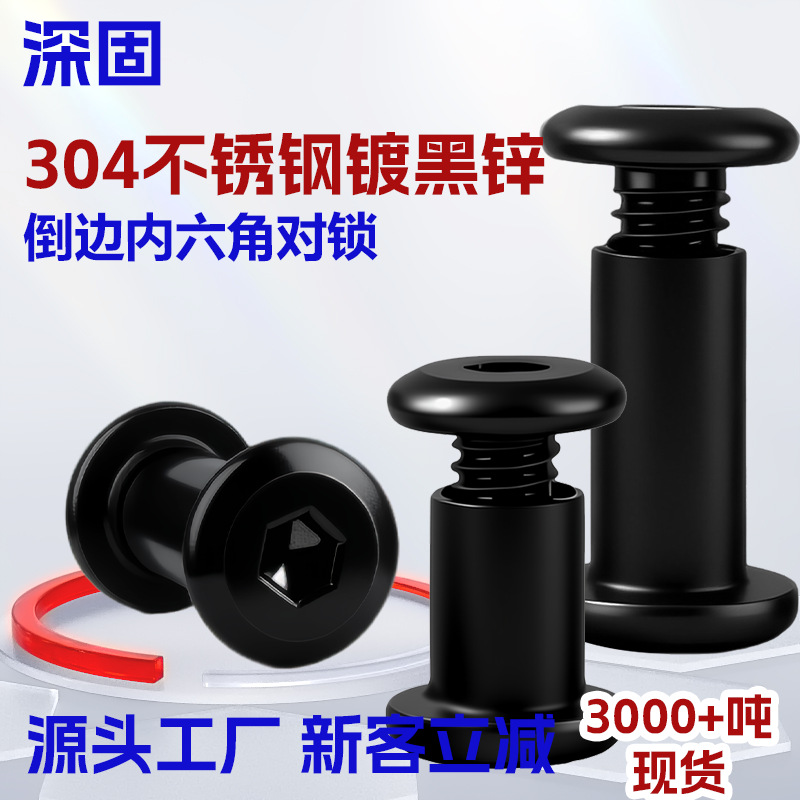 304不锈钢镀黑锌倒边内六角对锁螺丝黑色M2-M8家具夹板子母螺丝钉