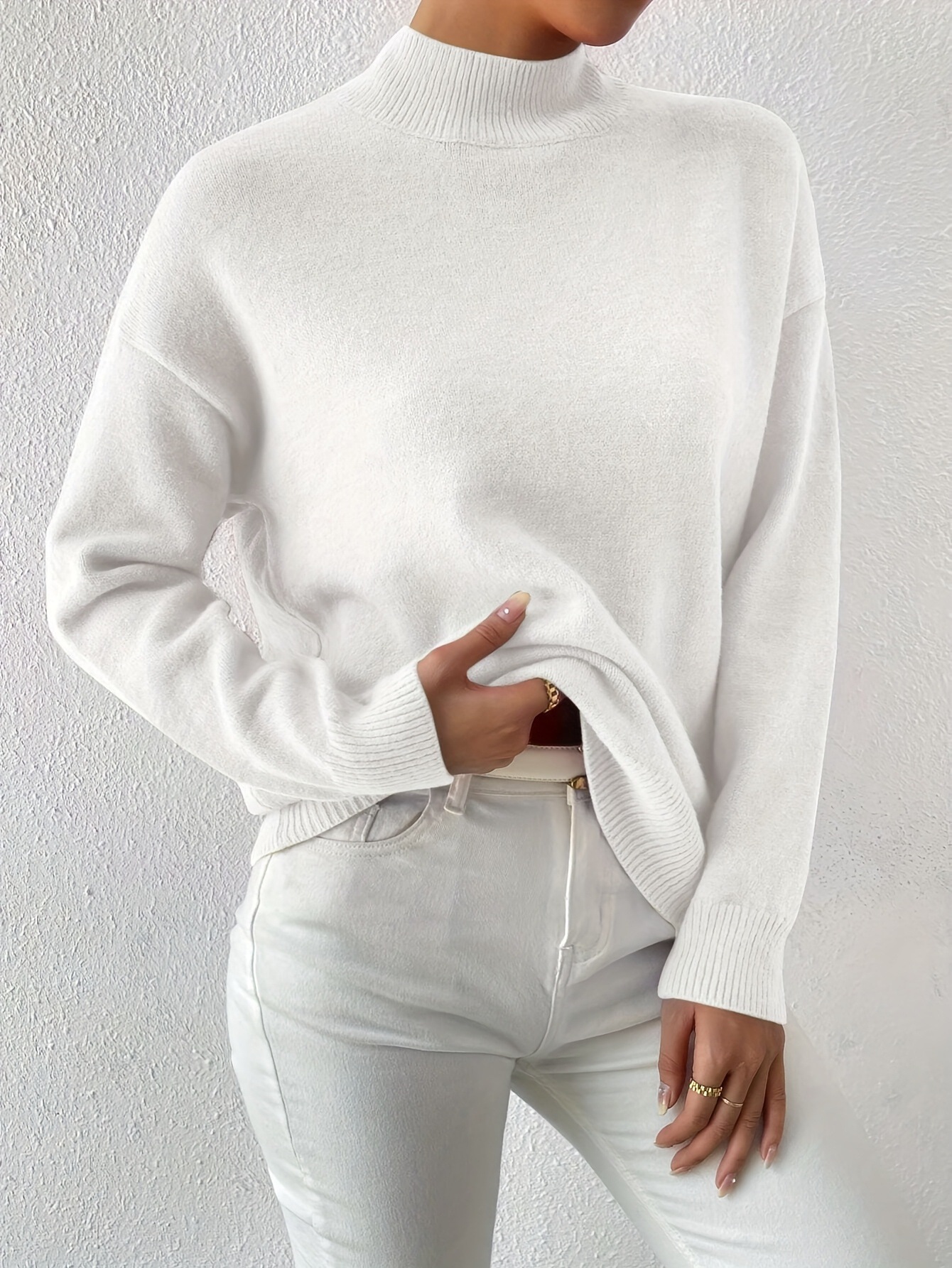 秋冬半高领套头长袖毛衣亚马逊跨境外贸女装时尚纯色宽松针织上衣