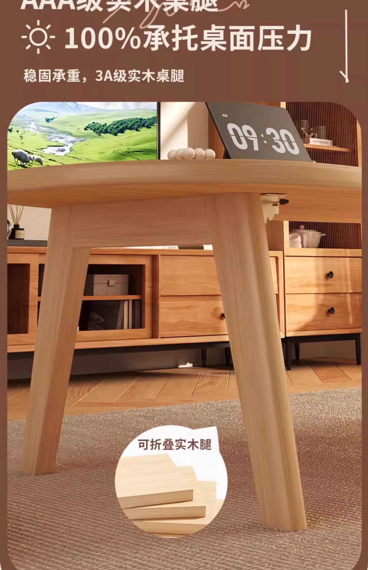 日式实木客厅茶几小户型ins家用原木风圆形边几简约吃饭茶桌