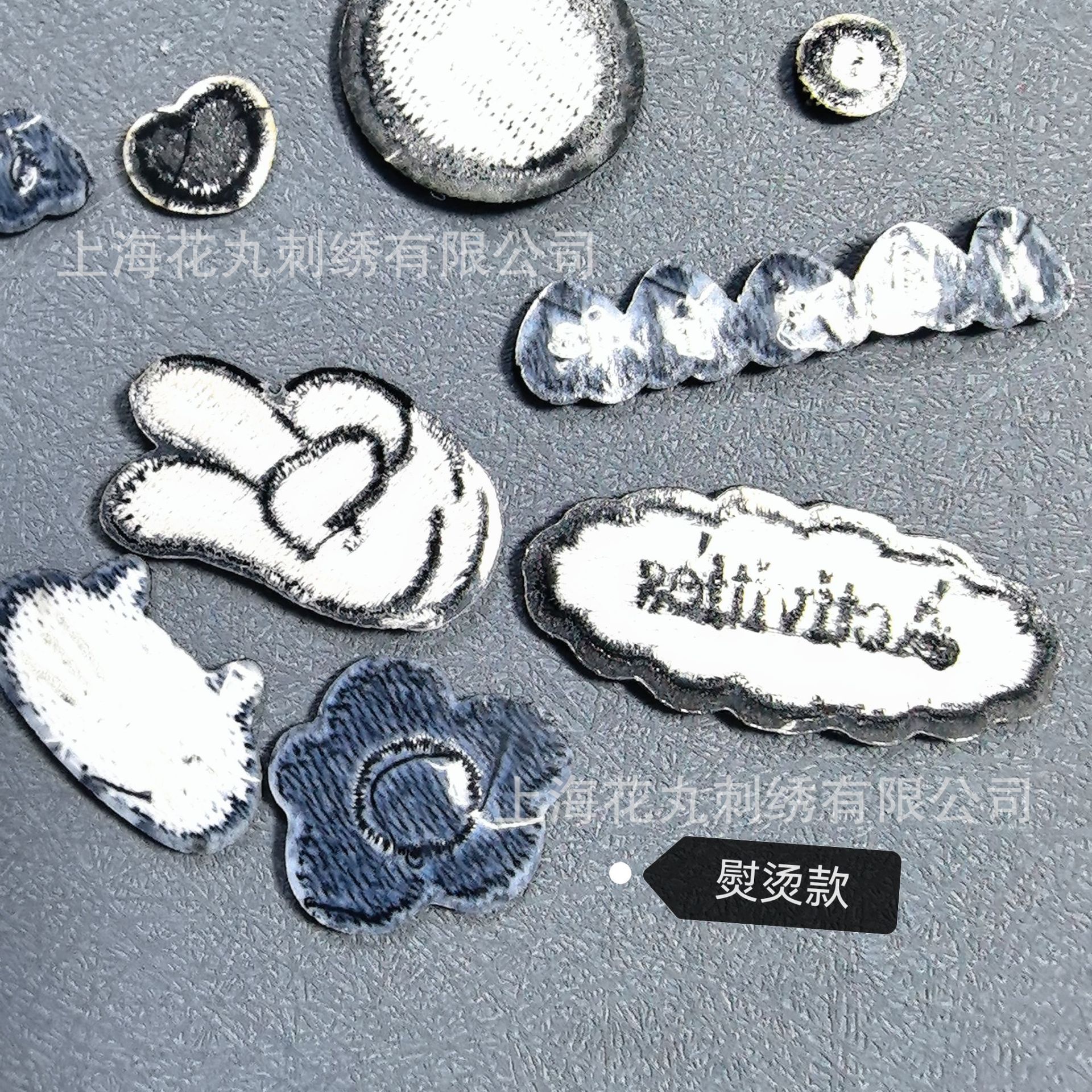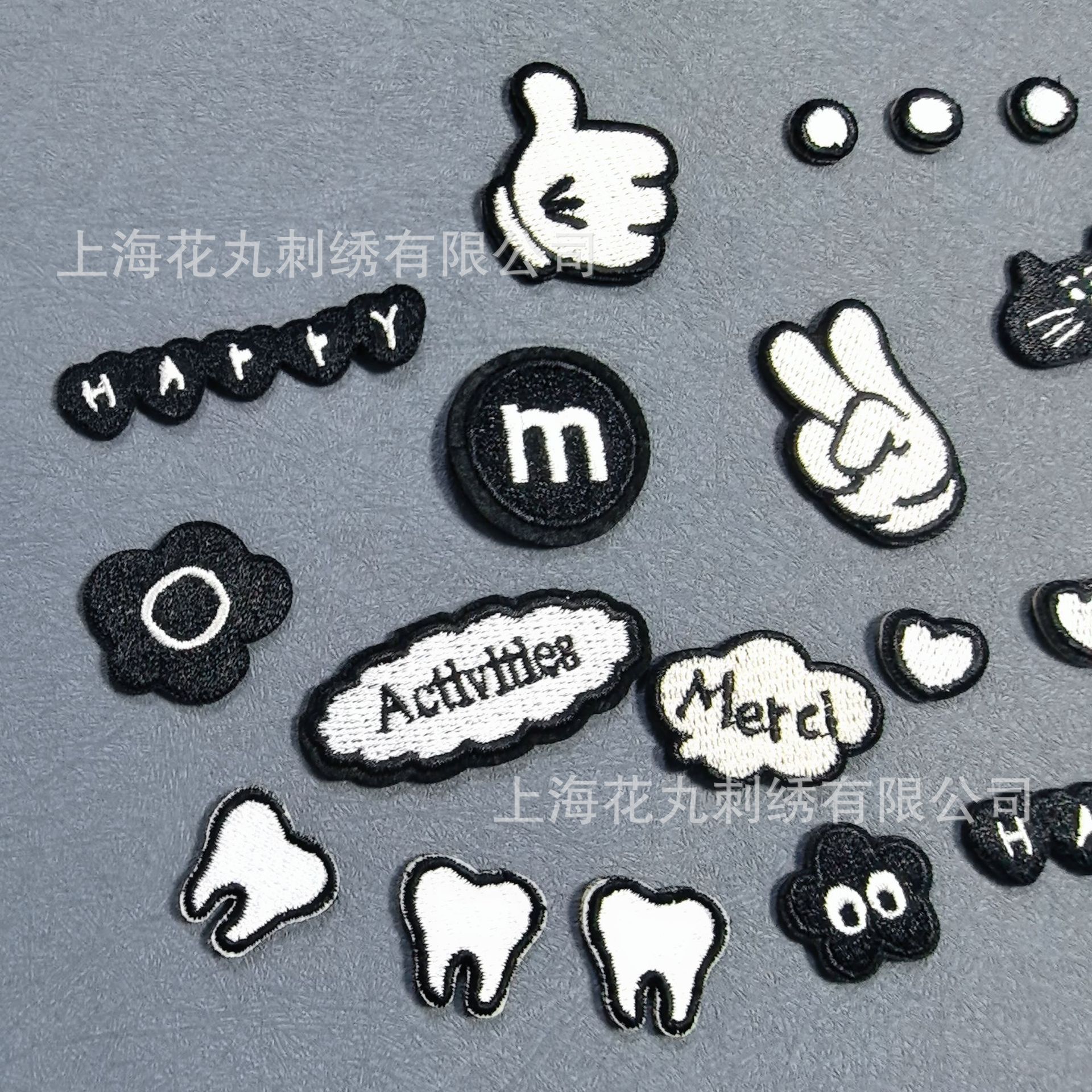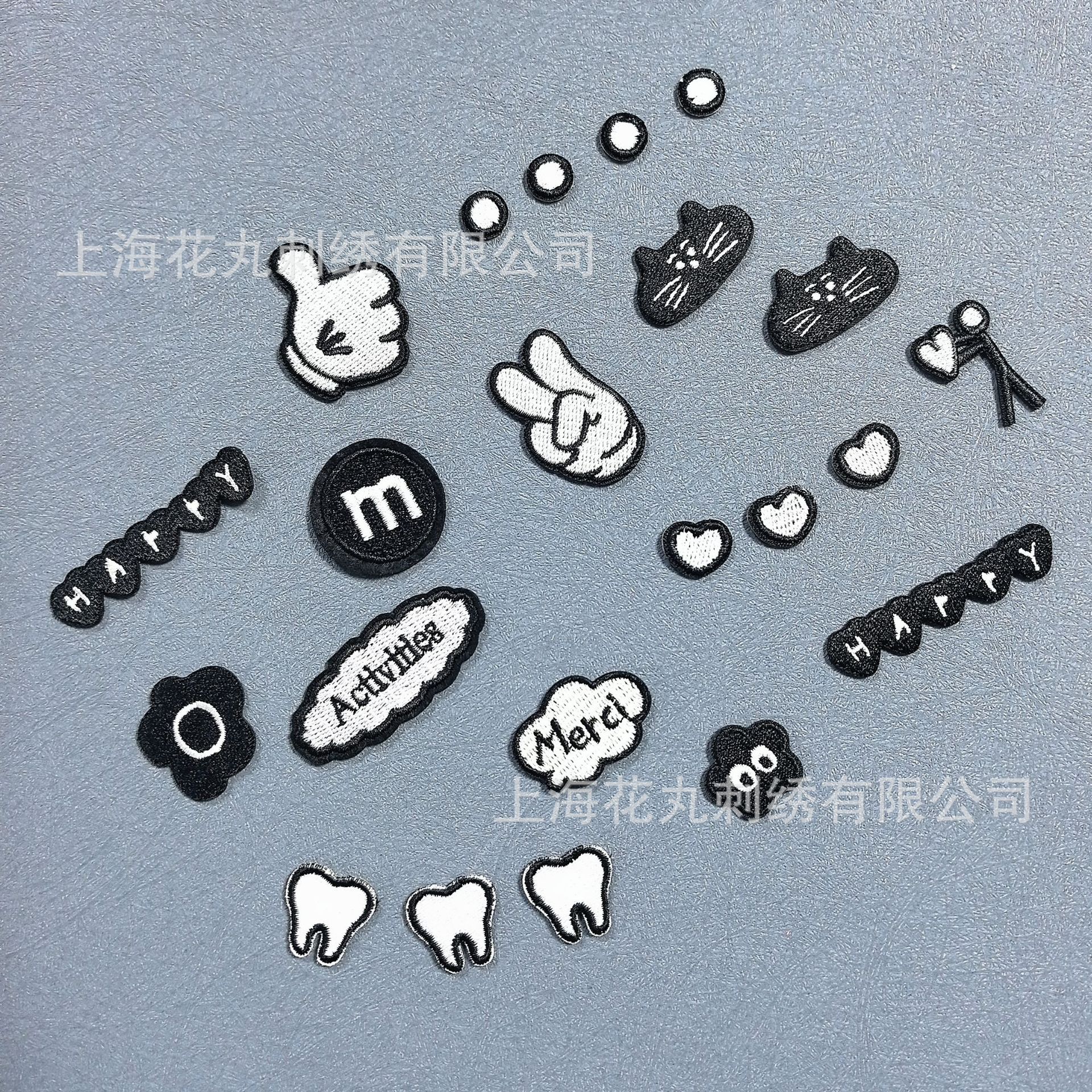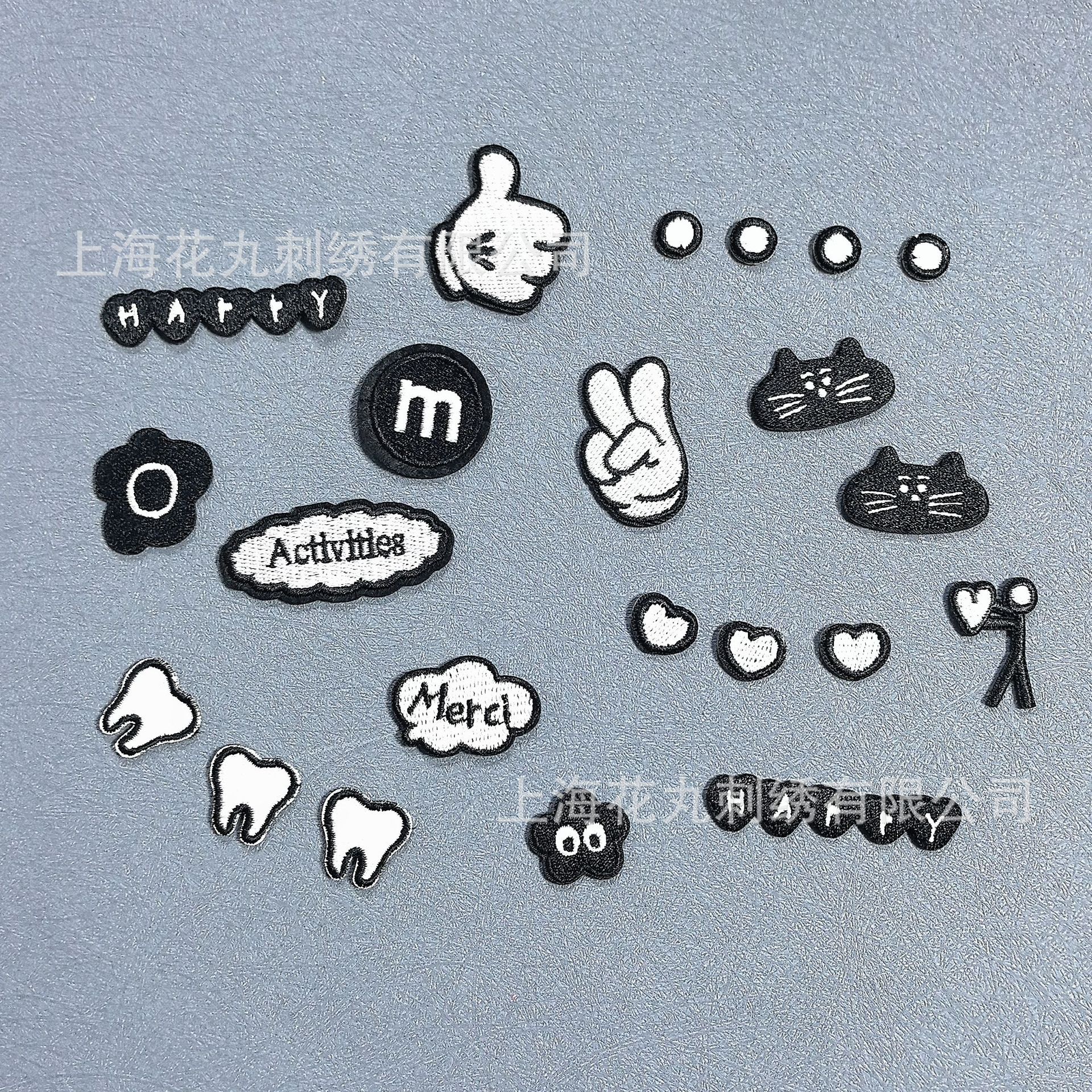 花丸 黑白迷你元素刺绣补丁布贴装饰热熔胶娃衣补丁贴热烫贴布