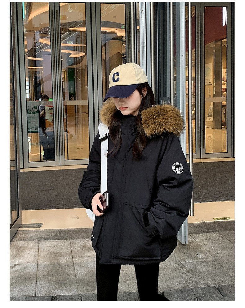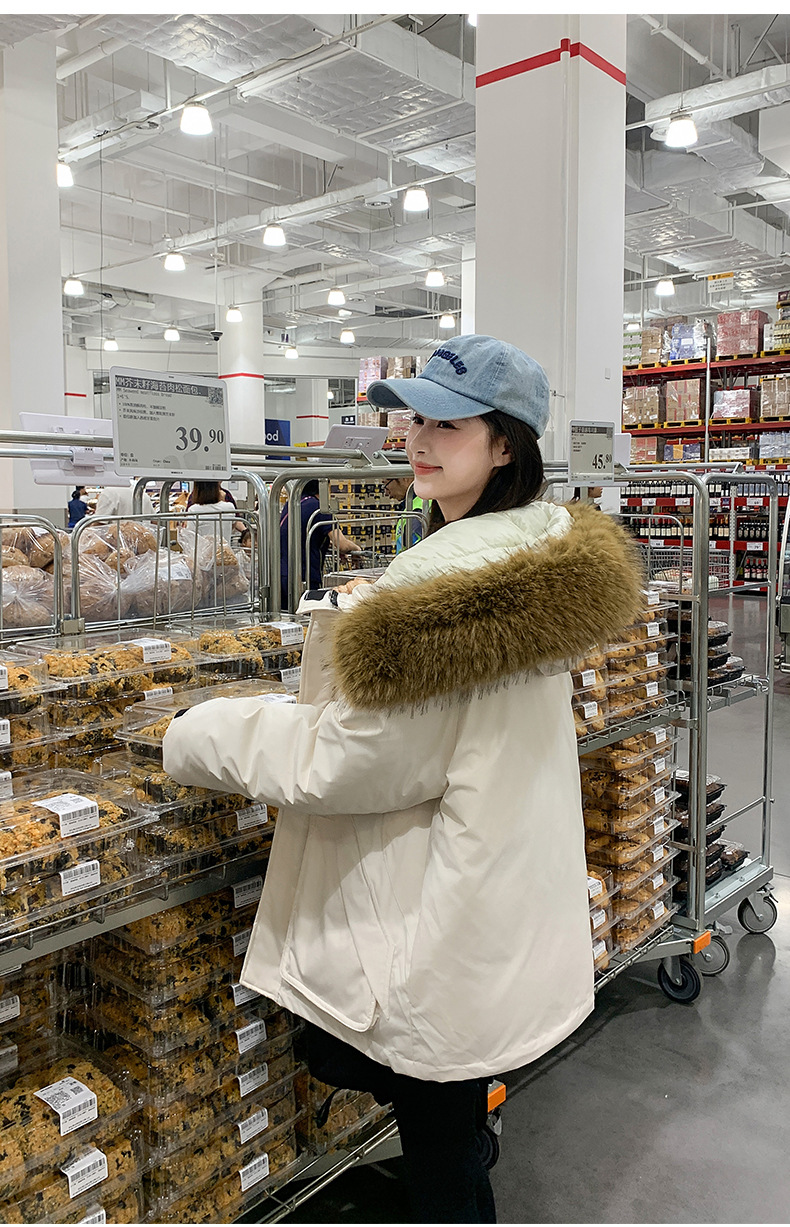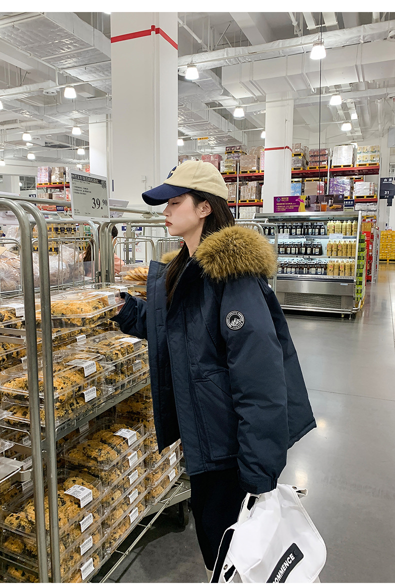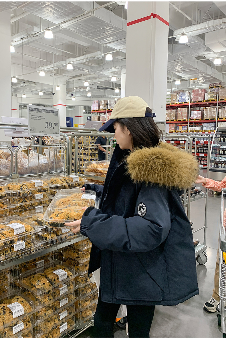 匠一 大毛领贴标派克服女2025秋冬新款加厚保暖学生BF风ins面包服