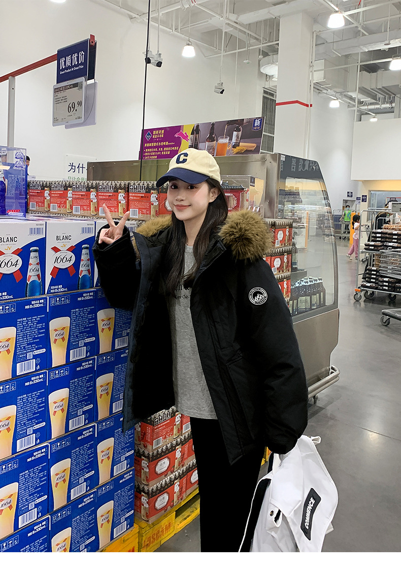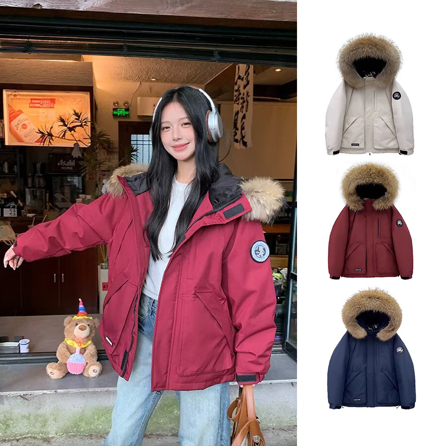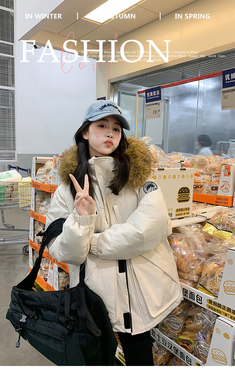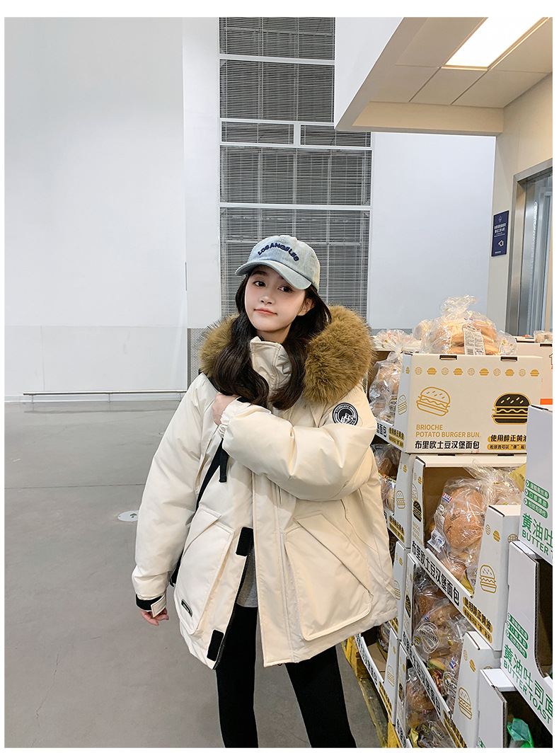 匠一 大毛领贴标派克服女2025秋冬新款加厚保暖学生BF风ins面包服