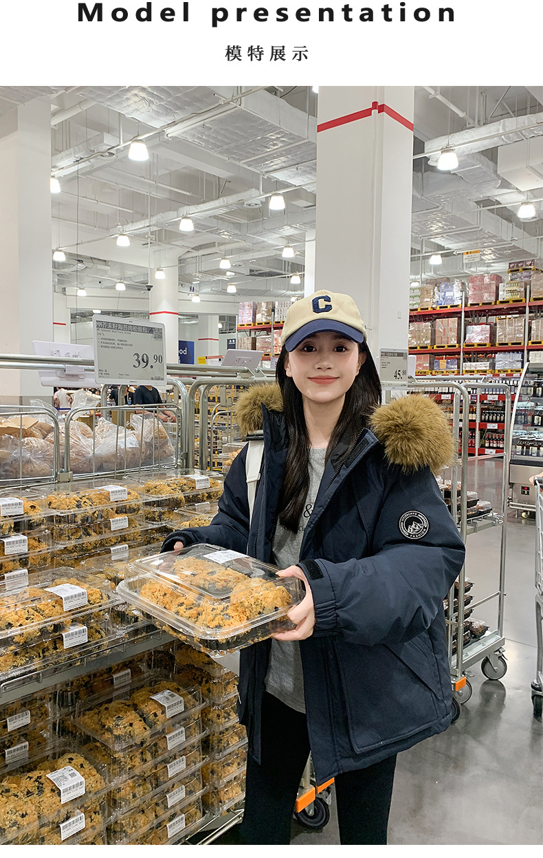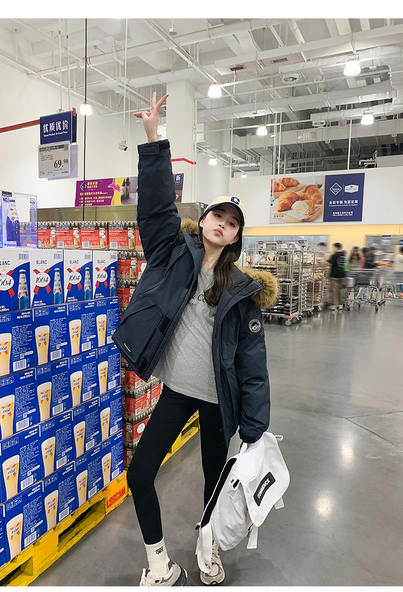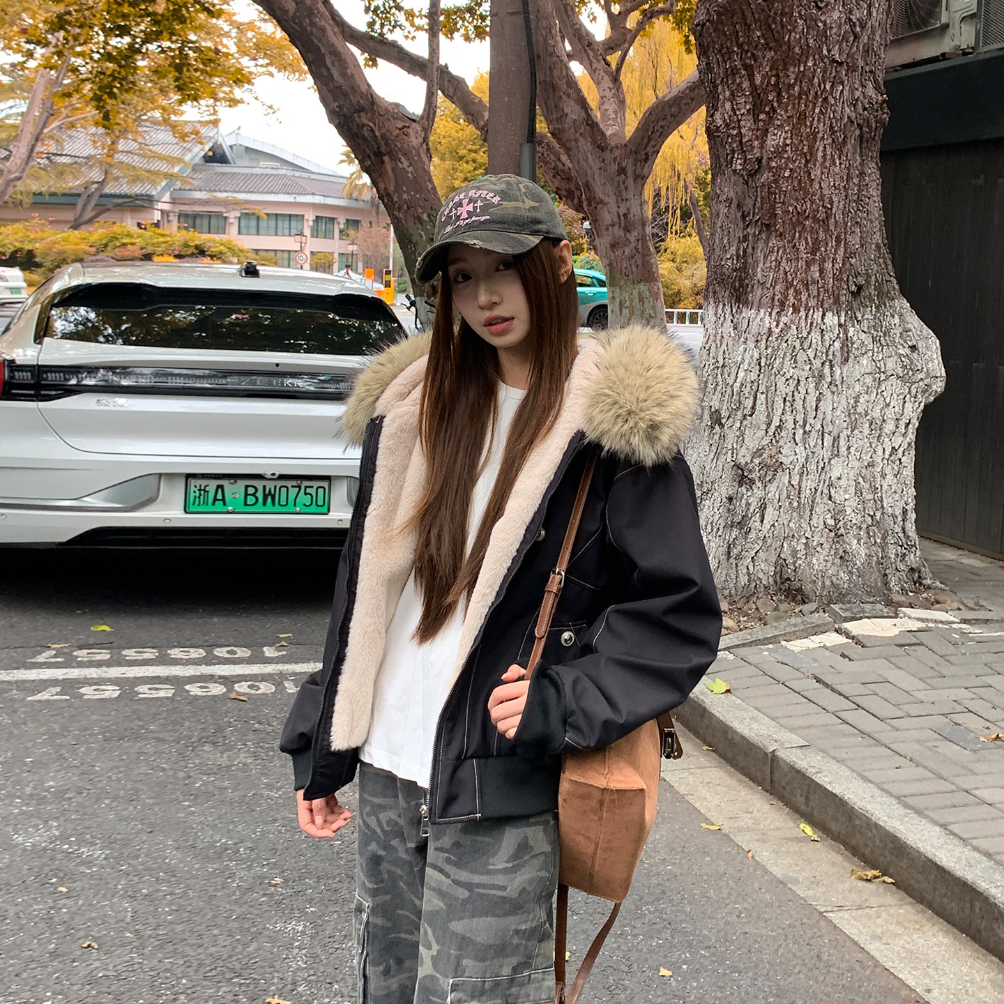 2025年冬季新款美式工装外套女学生加厚百搭派克服连帽毛领棉服潮