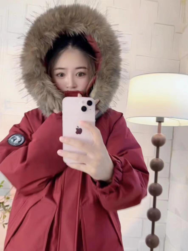 小个子棉服女工装派克服2025新款加厚保暖大毛领派克服棉袄冬外套