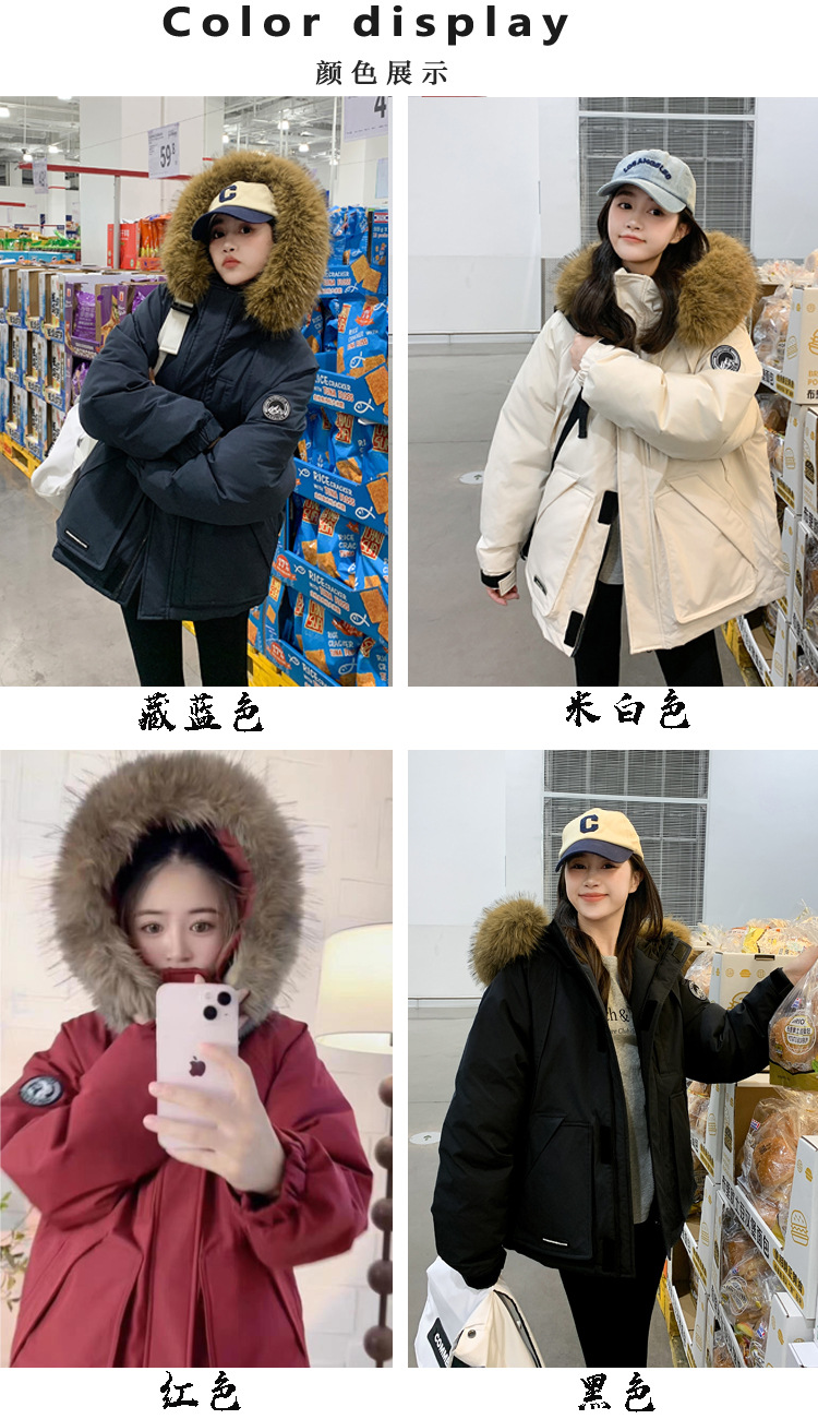 冬季新款大毛领工装棉衣外套韩版潮流学生羽绒棉服女宽松加厚棉袄