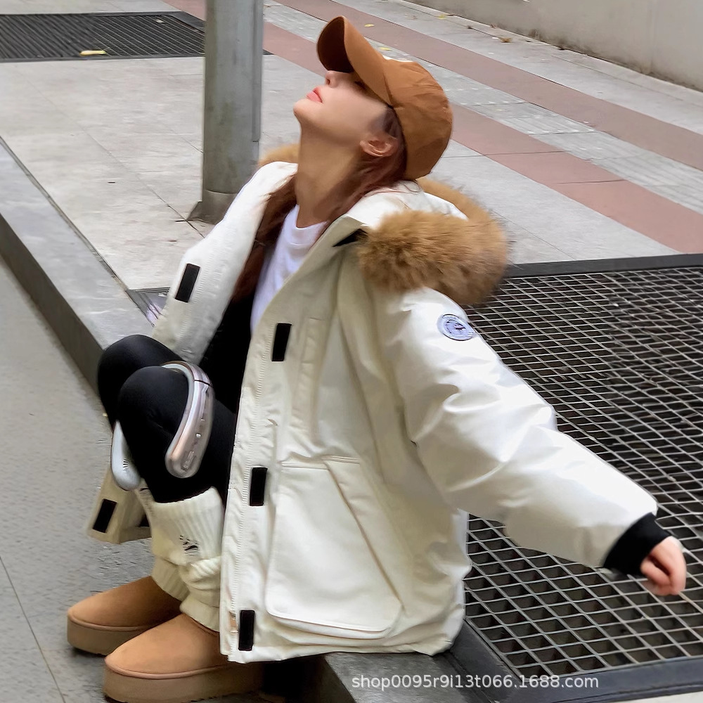 2025欧美外贸棉服派克服男女短款小个子大毛领棉袄棉衣外套冬