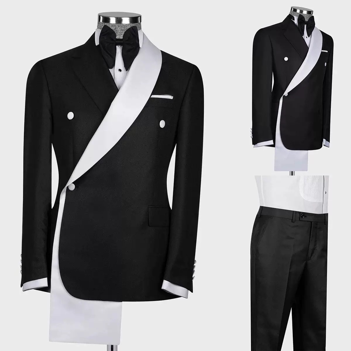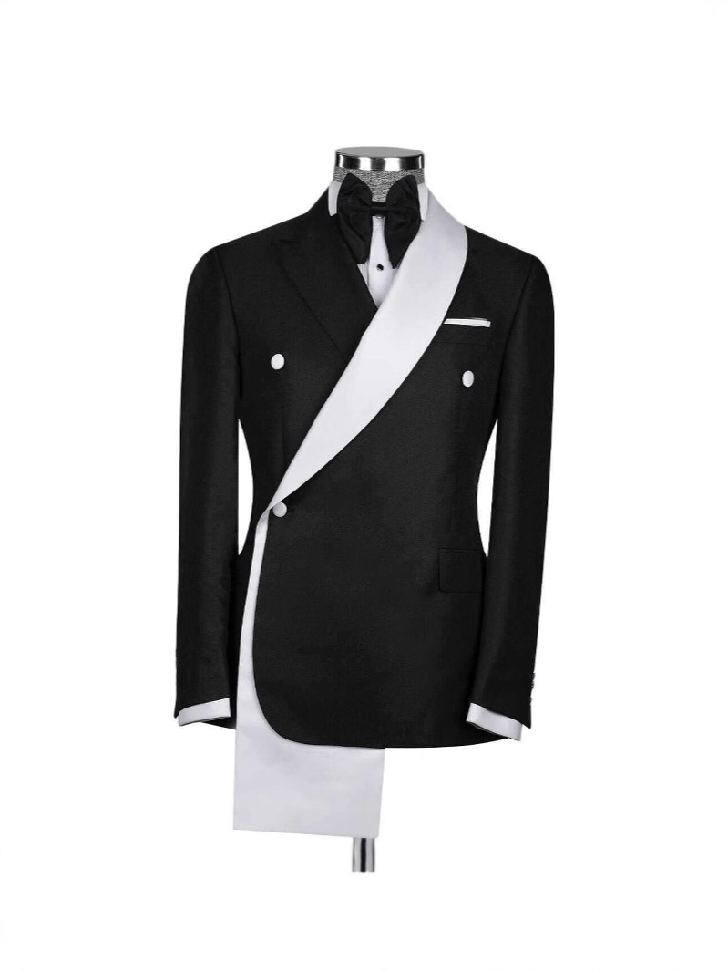外贸速卖通厂家直销男士两件套主持人宴会双排扣镶色婚礼宴会套装