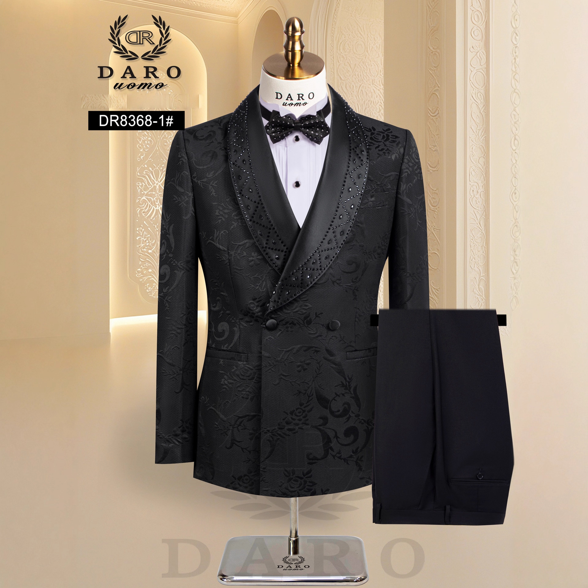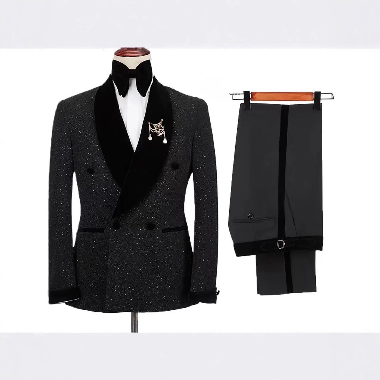 2026主推【跨境爆款】大码男士烫钻青果领礼服高密度提花刺绣面料