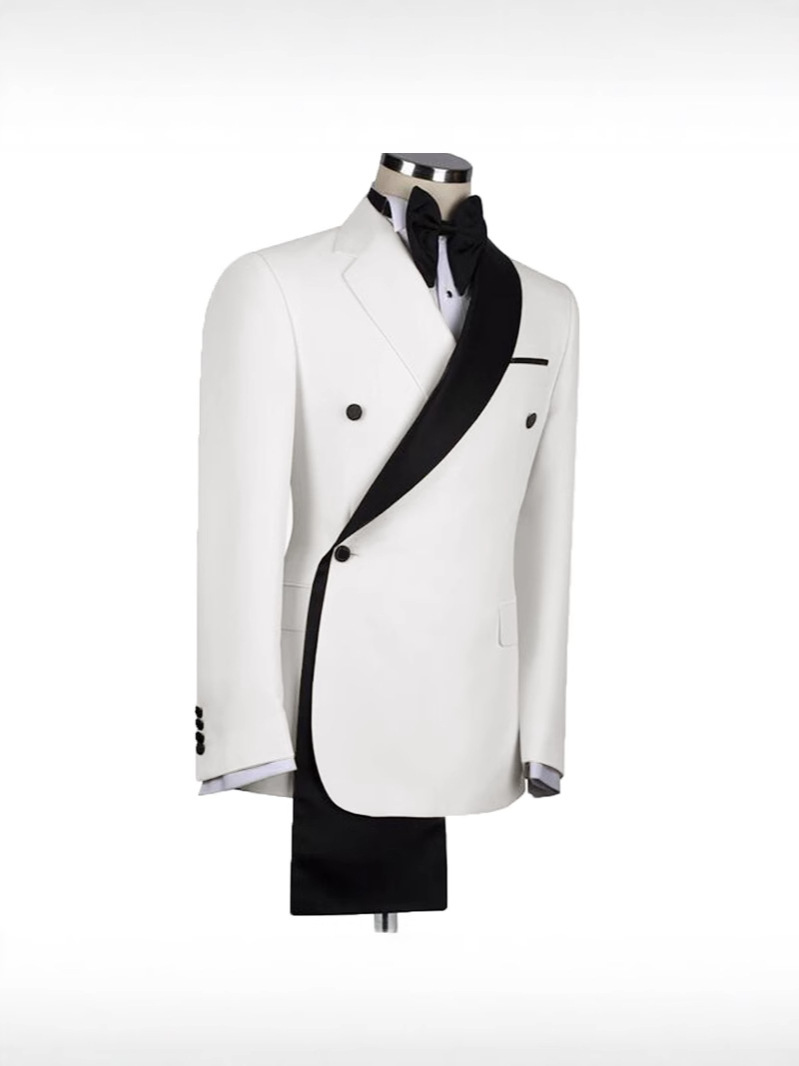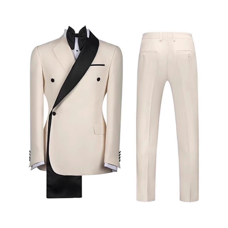 跨境主持西服俩件套双排扣青果领休闲外贸新郎婚礼西装套装男士修