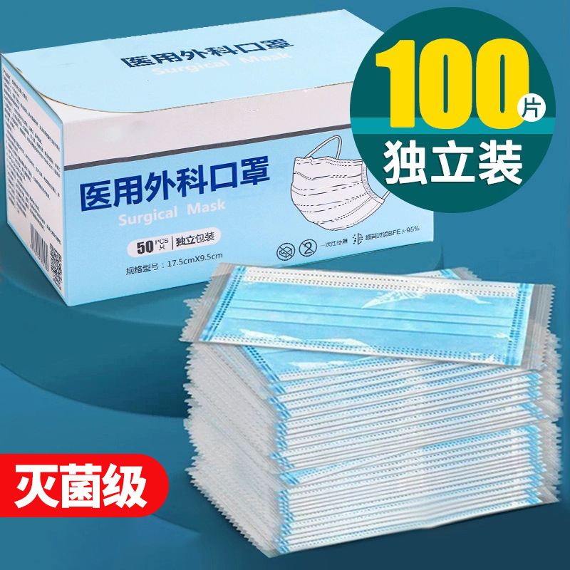 使い捨て医療用外科マスク独立包装三層防護防護医療用級袋工場卸売りスポット