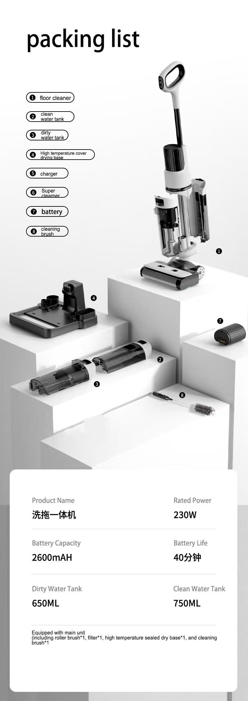 颜色 白色+烘干功能,滚刷