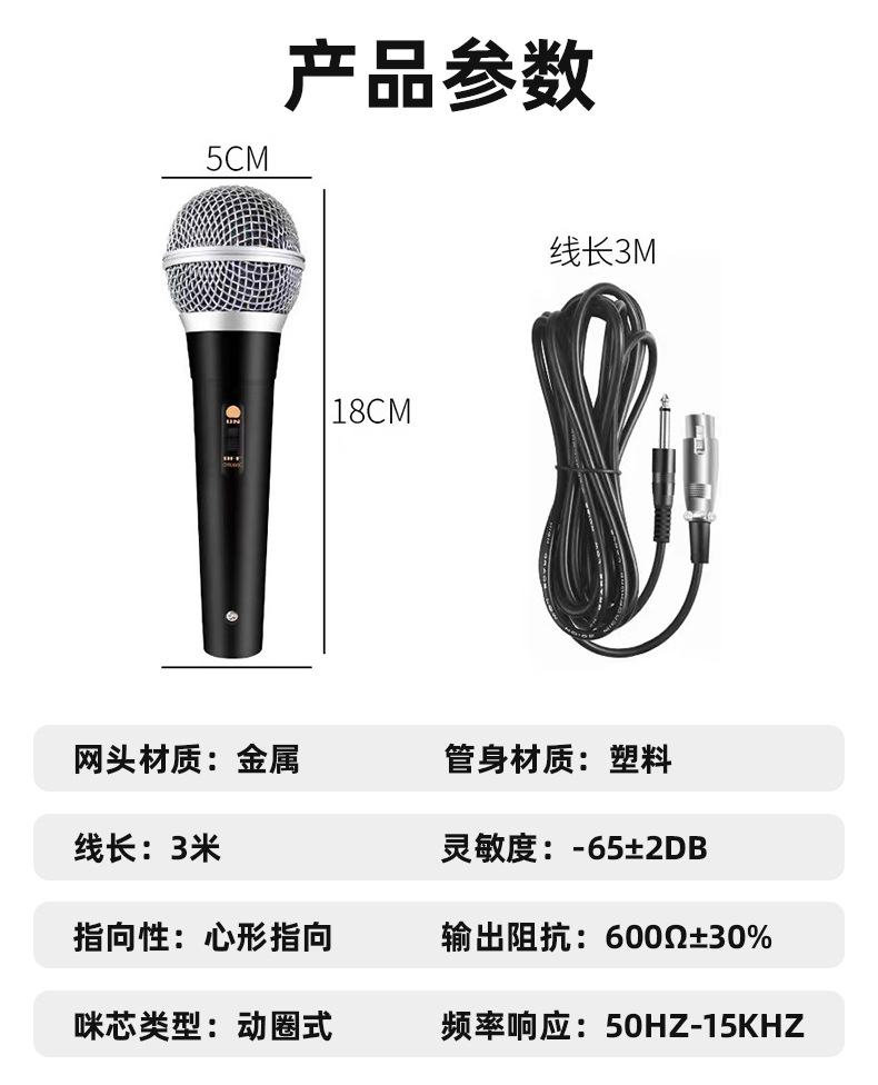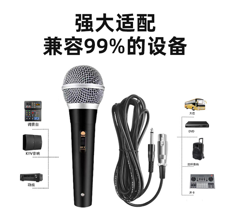 跨境有线手持话筒家用k歌户外音响功放调音台声卡专业有线麦克风