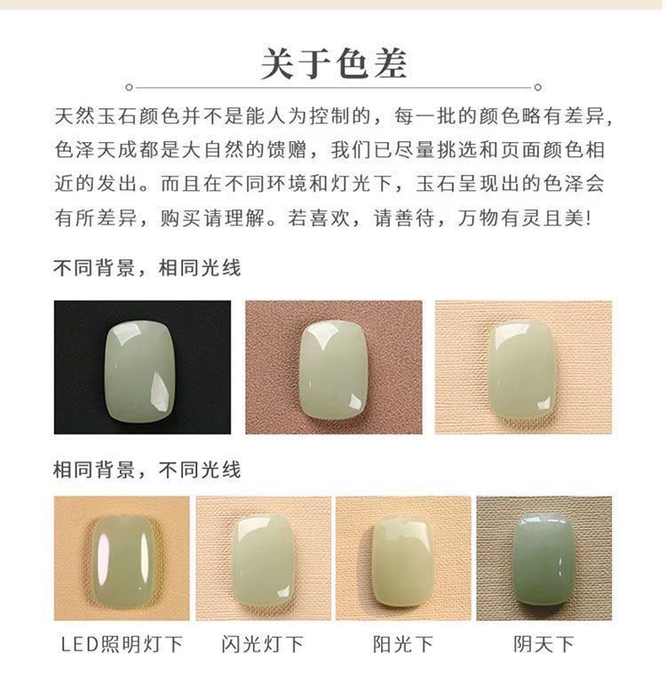 1.下单:天然玉石内有冰纹、裂纹、棉絮、矿缺、色差等,属于正常现象,请三思后下单。多次跑单者、我们有权取消购买资格