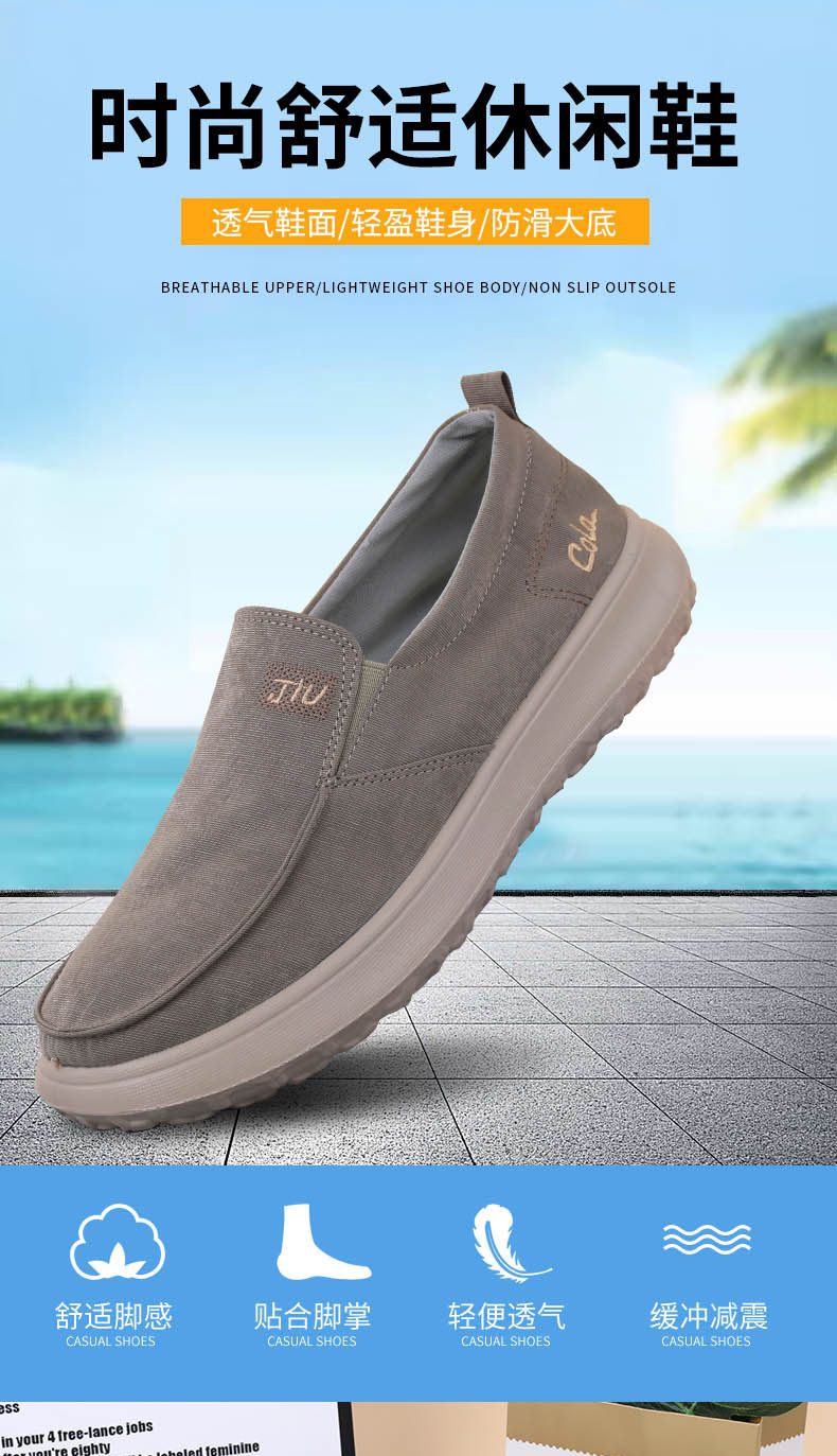 春季老北京布鞋男款单鞋爸爸懒人鞋防滑一脚蹬帆布鞋透气休闲男鞋