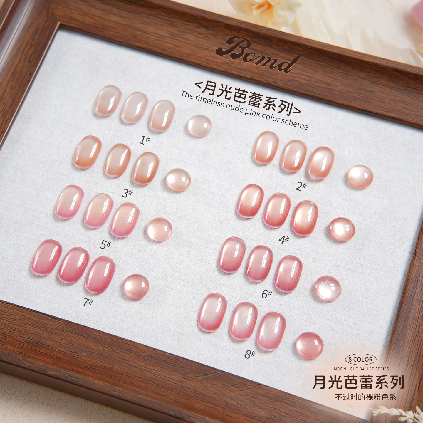 月光芭蕾猫眼甲油胶2025年新款裸粉色系列显白金光绸缎玻璃珠美甲