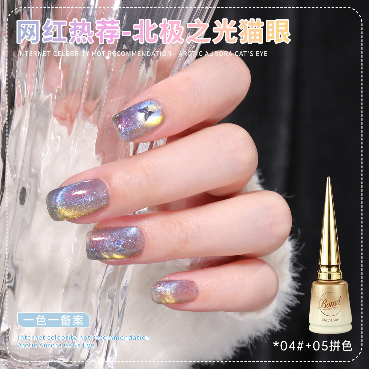 人気の北極光キャッツアイマニキュア接着剤 2025 新しいマニキュア点滅カラフルなガラスビーズキャッツアイ接着剤