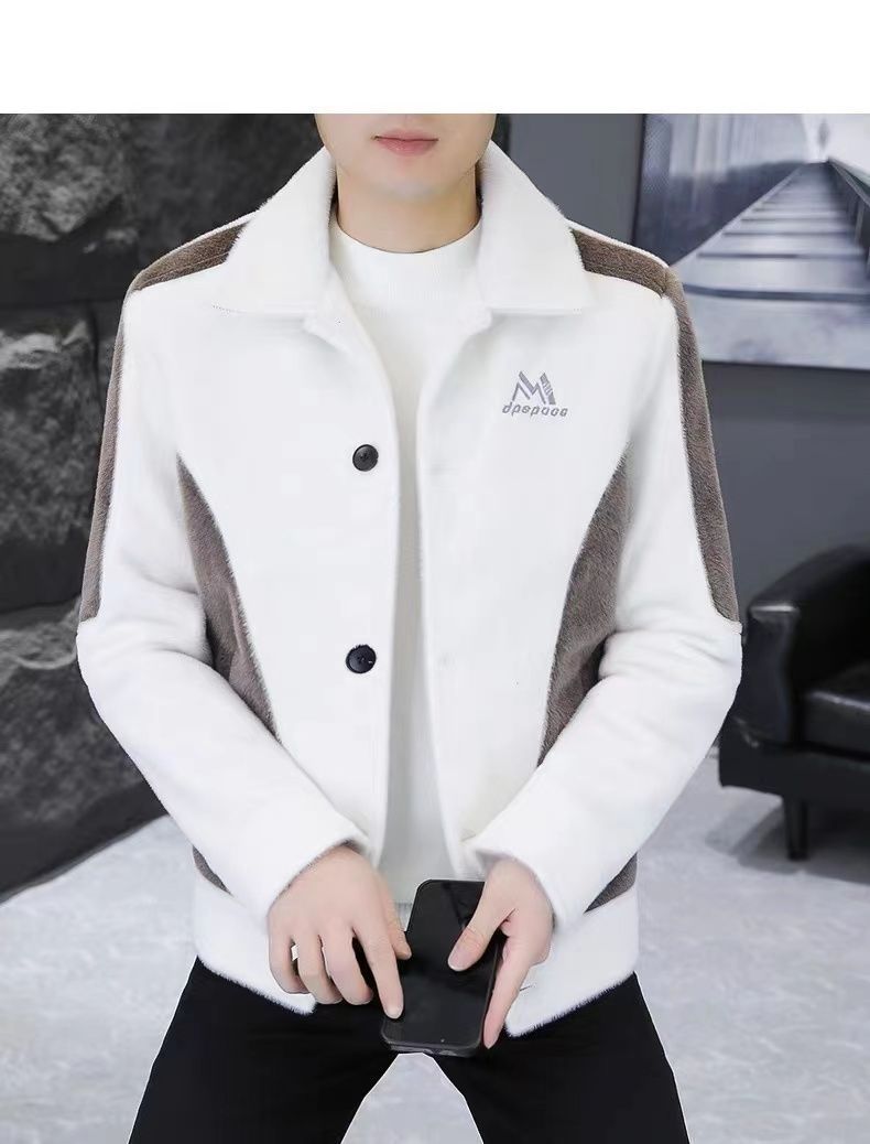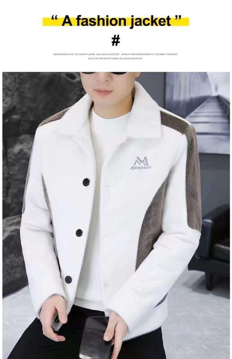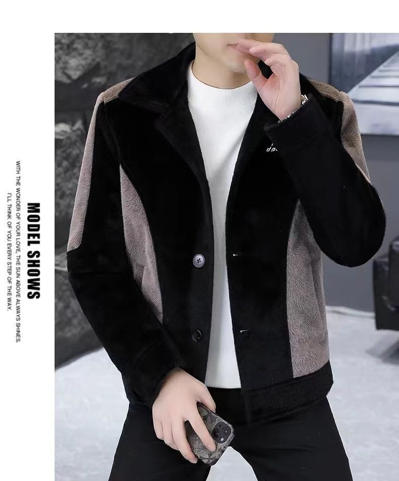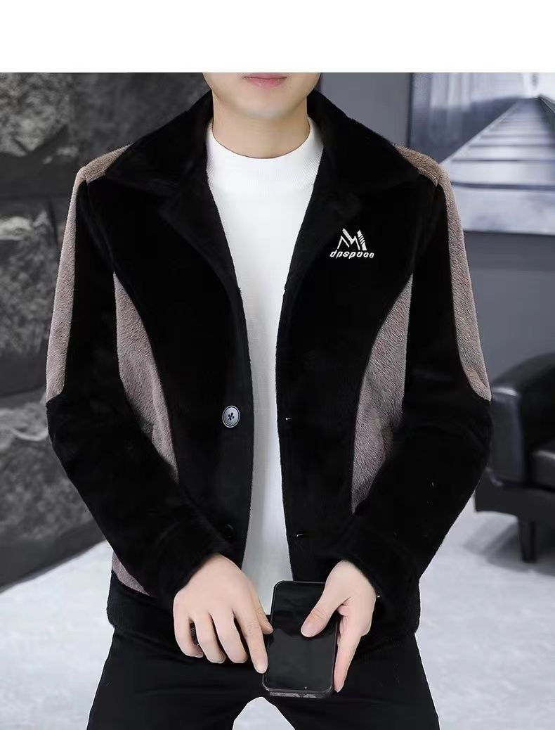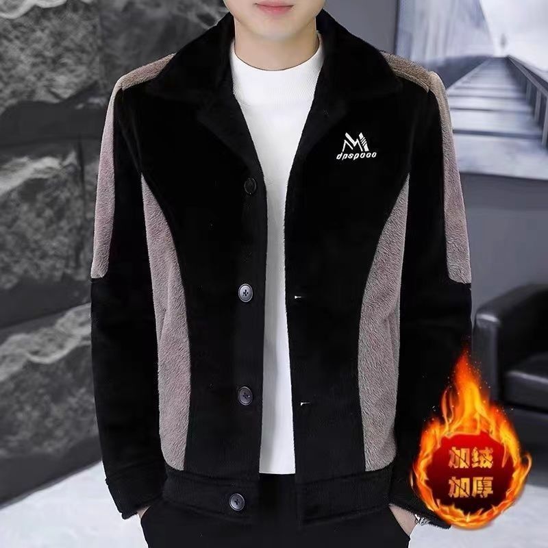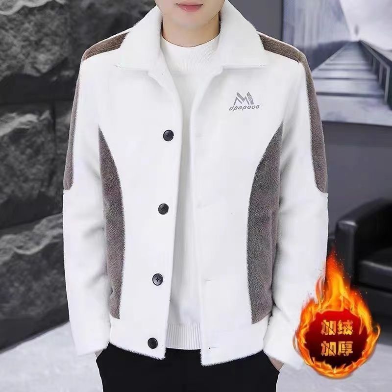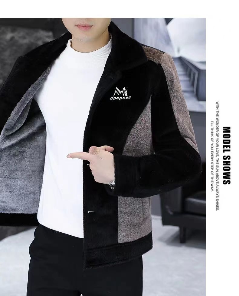 冬季青春潮流男士水貂外套潮流加绒加厚夹克男加绒翻领保暖大衣