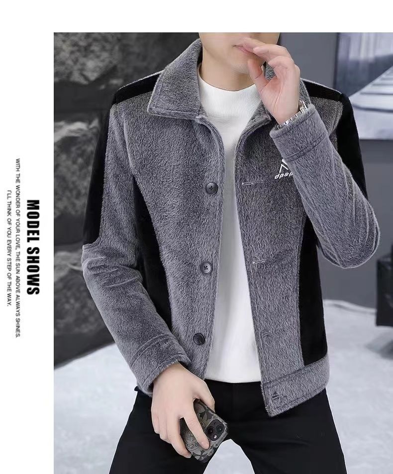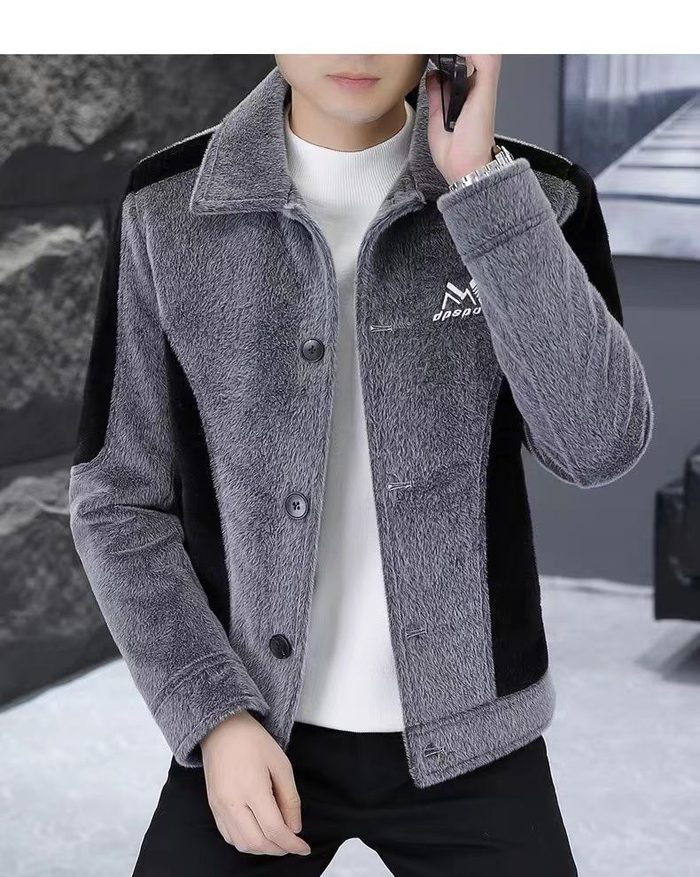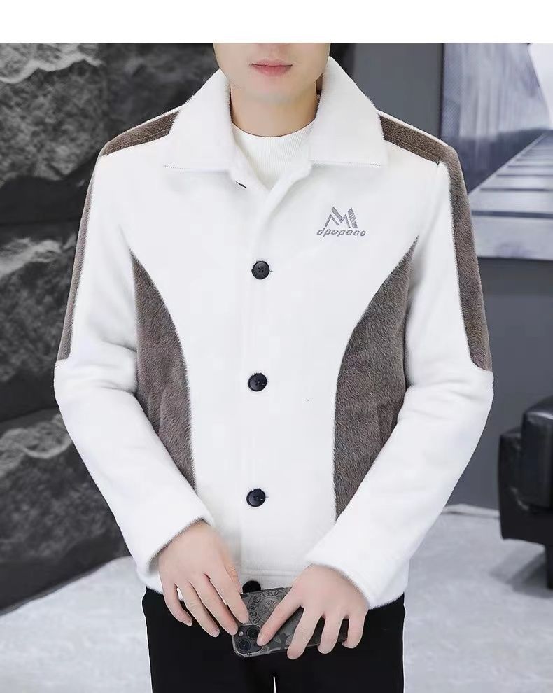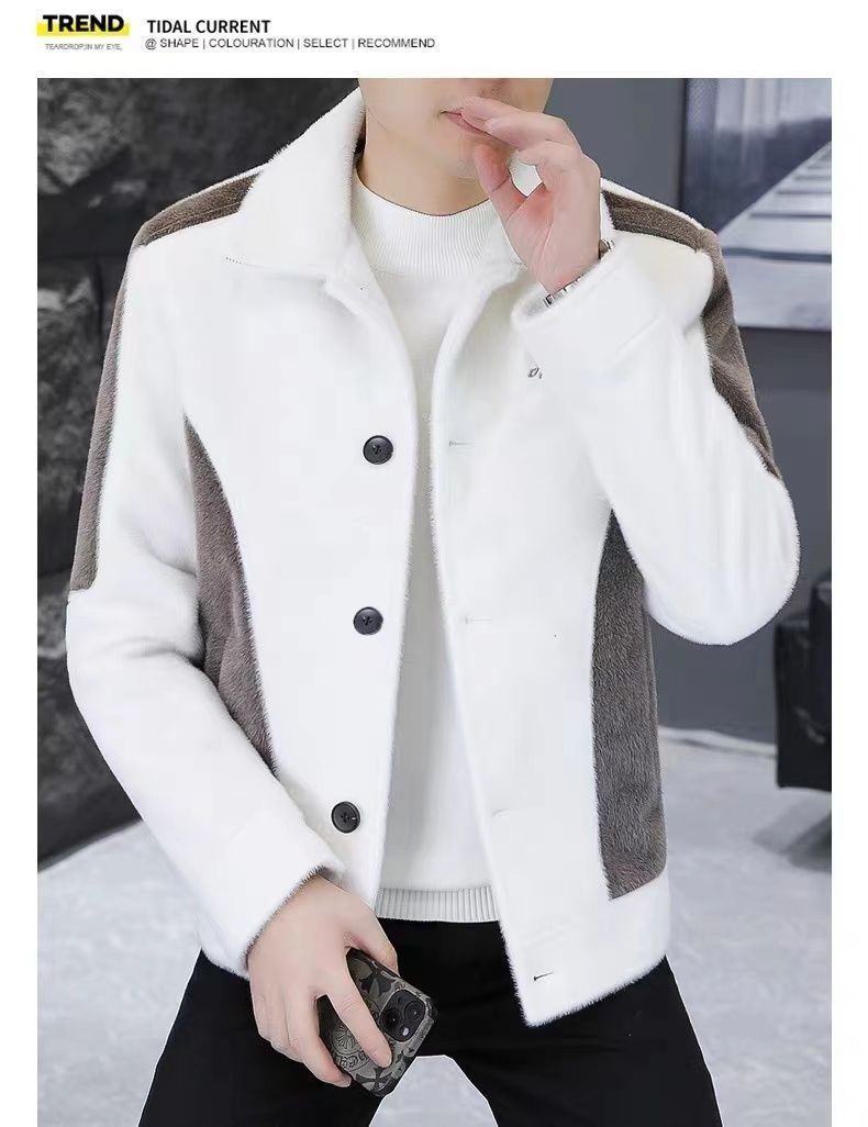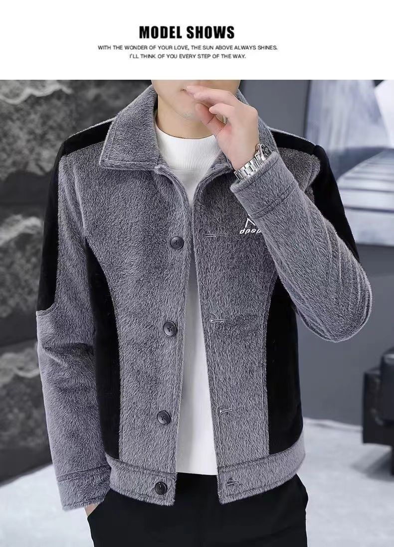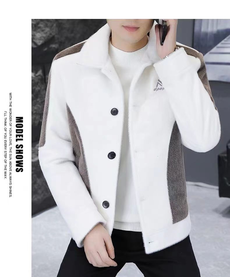 冬季青春潮流男士水貂外套潮流加绒加厚夹克男加绒翻领保暖大衣