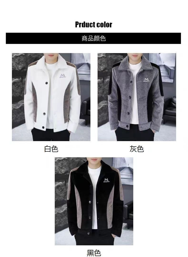 【复合加绒】秋冬潮流外套夹克男青年加绒加厚拼色短款毛呢