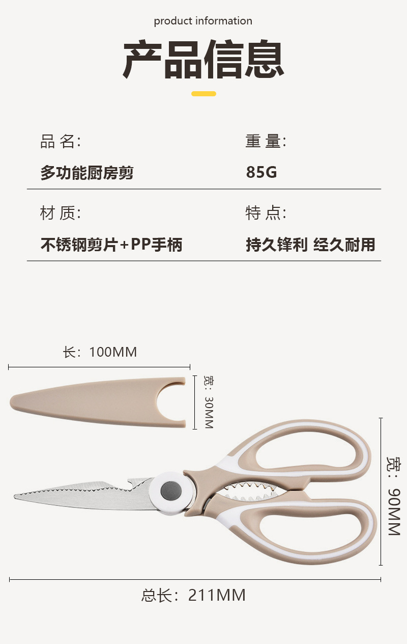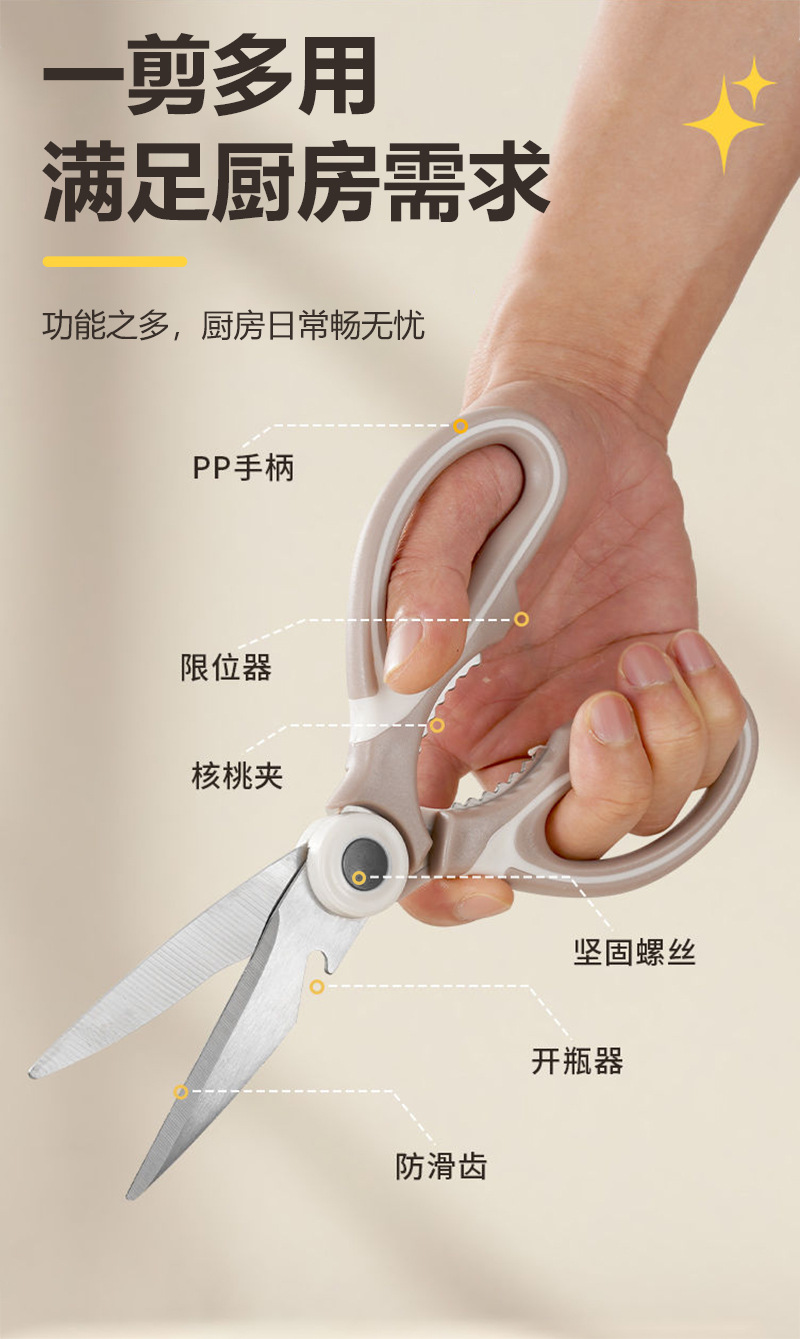德系工艺厨房大号剪刀多功能家用不锈钢鸡骨剪食物剪裁缝剪