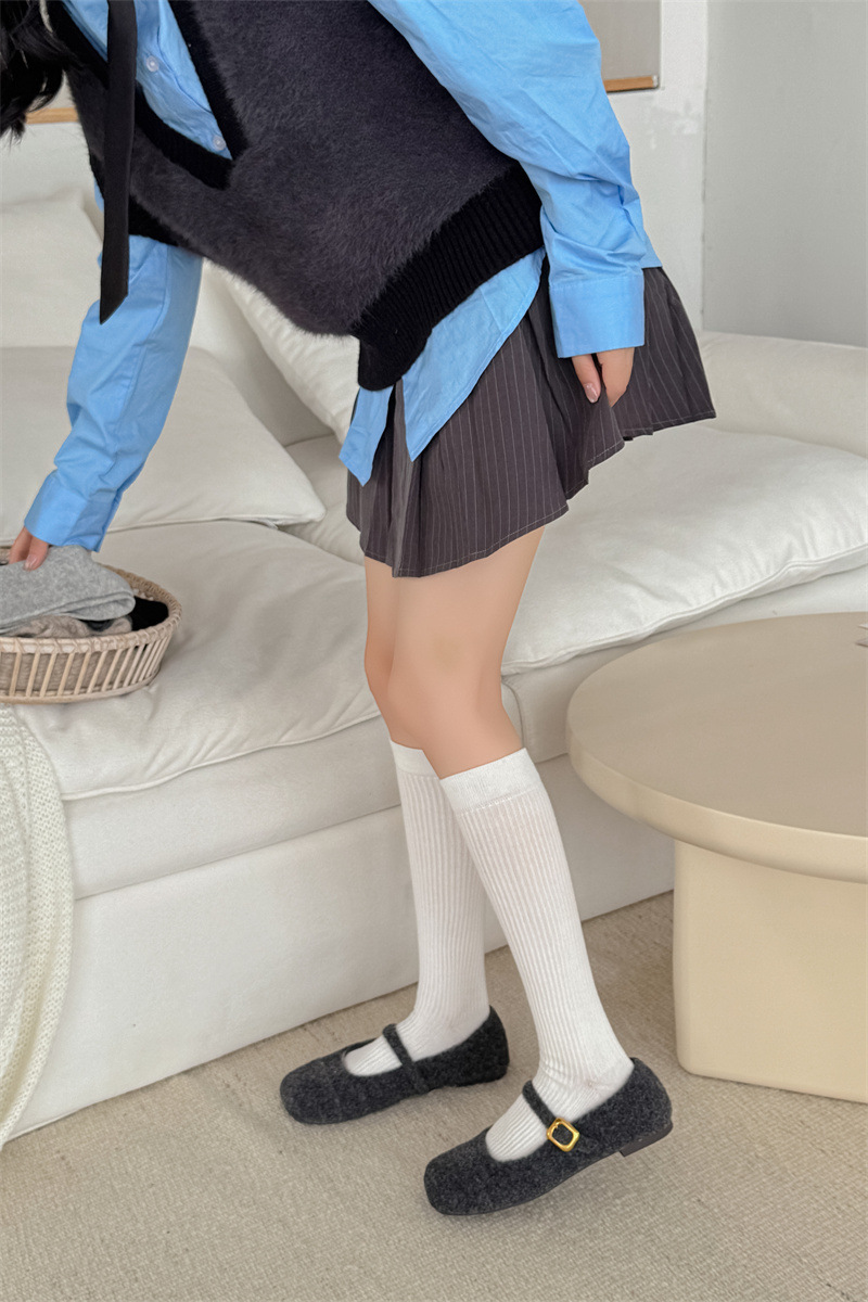 秋冬羊绒小腿袜双针纯色竖条纹保暖长筒袜美拉德显瘦堆堆袜