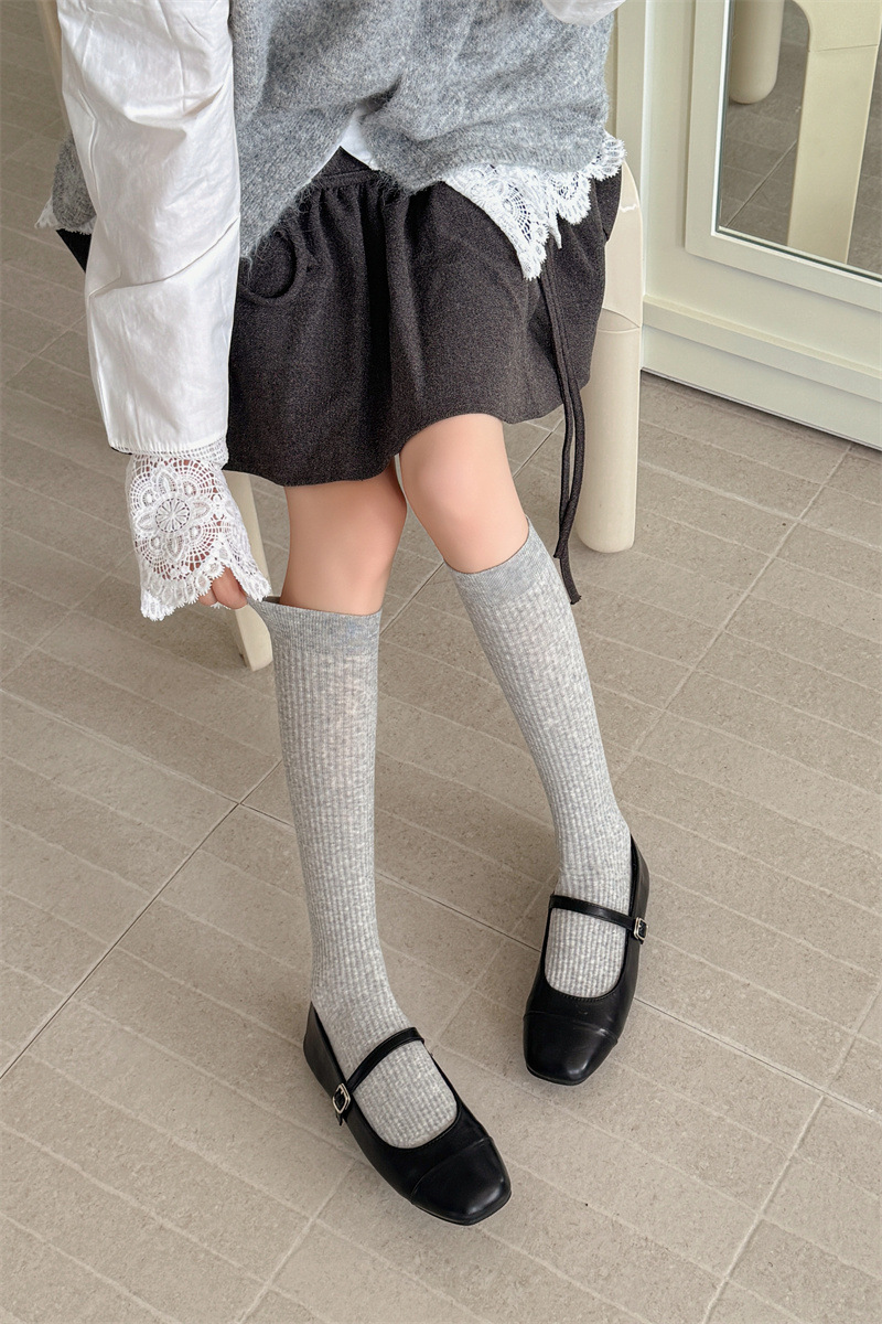 秋冬纯色百搭小腿过膝袜无骨平板简约日系精梳棉长筒袜