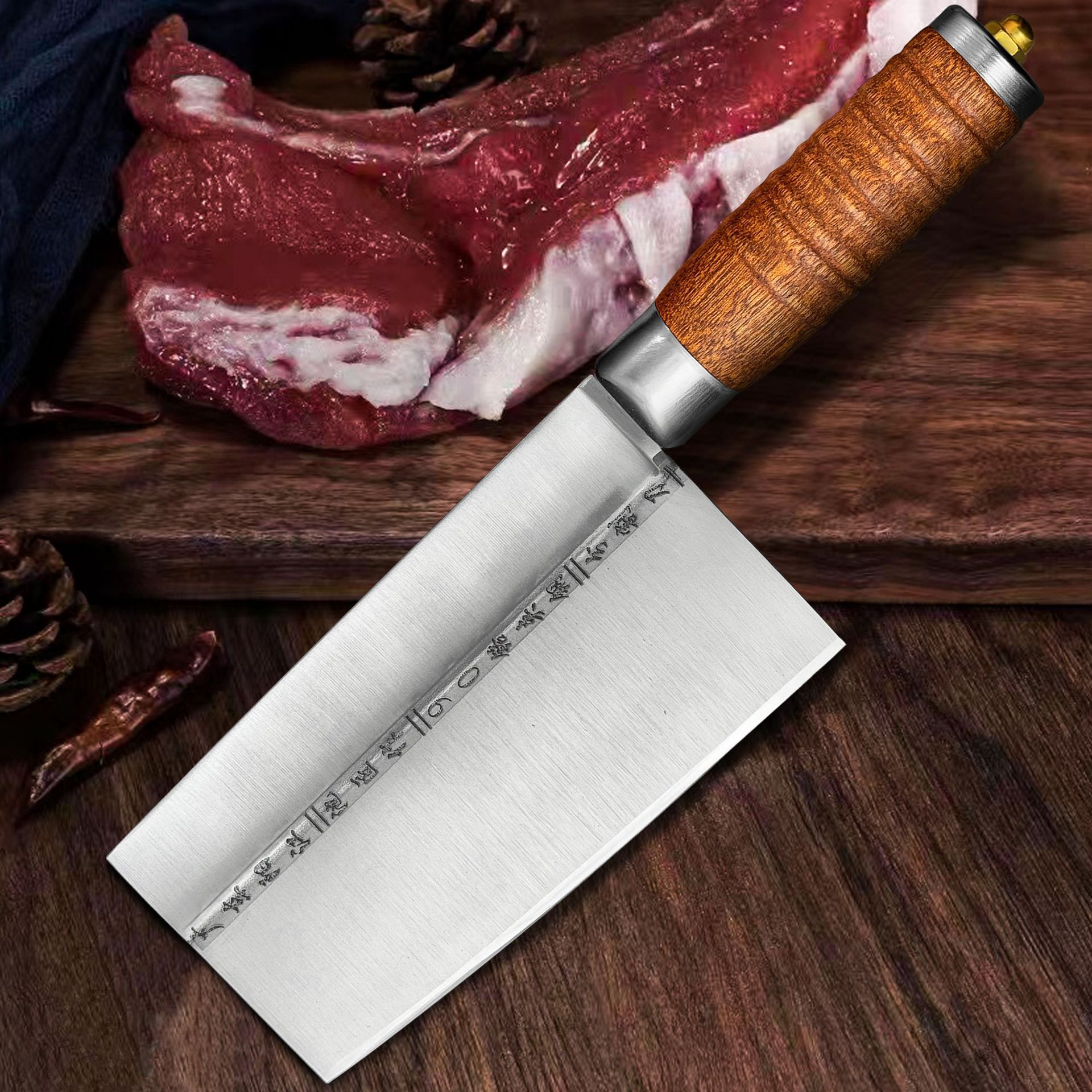 手鍛造骨切り包丁、肉屋専用薪割り包丁、屋外薪割り包丁、家庭用キッチン鋭利骨切り包丁