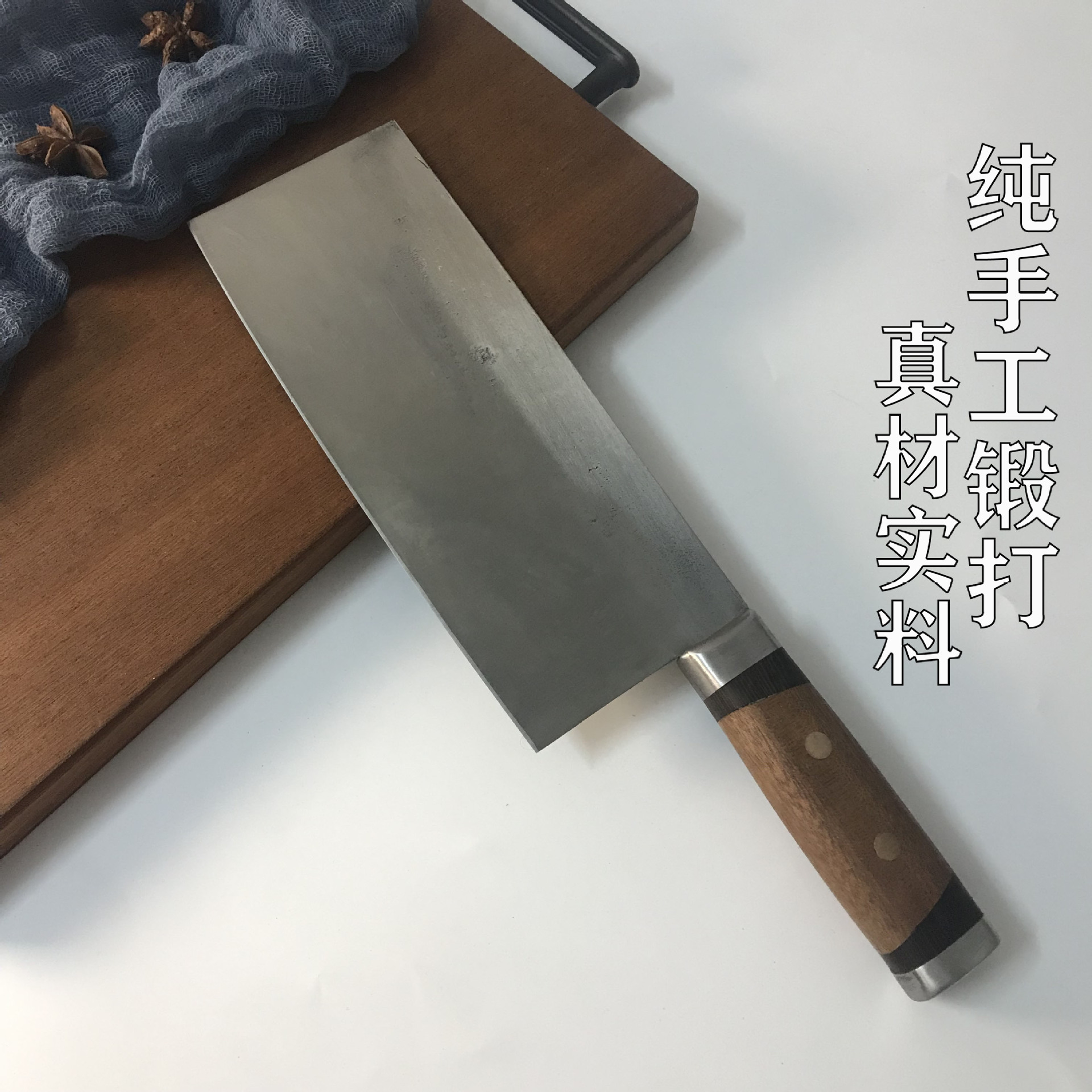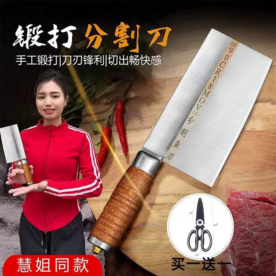 9铬夹钢分割刀锻打商用割肉刀家用切肉切菜实木手柄鱼生刀小菜刀