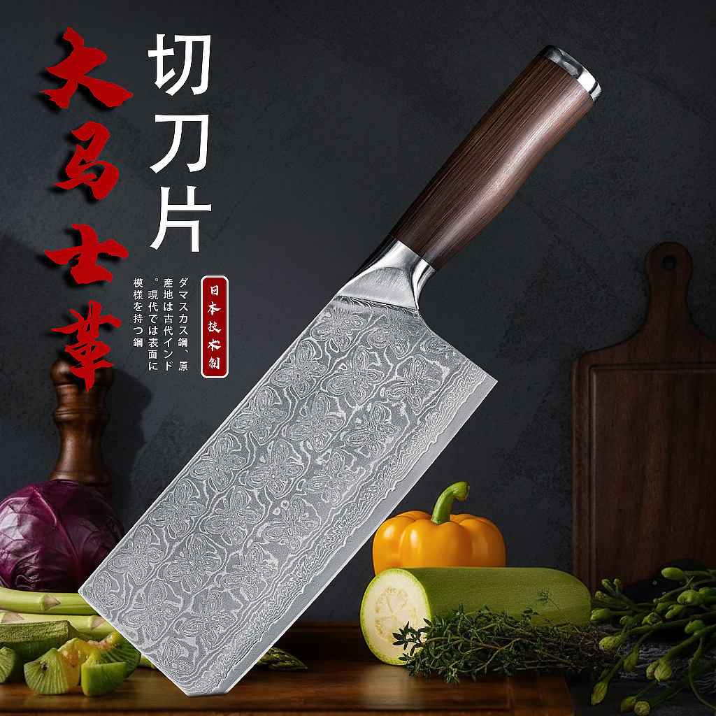 67层真大马士革钢材菜刀中式家用厨师专用切肉切片刀锋利VG10刀具