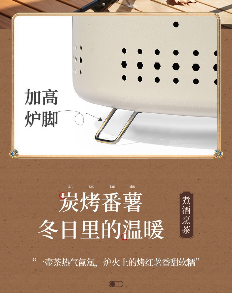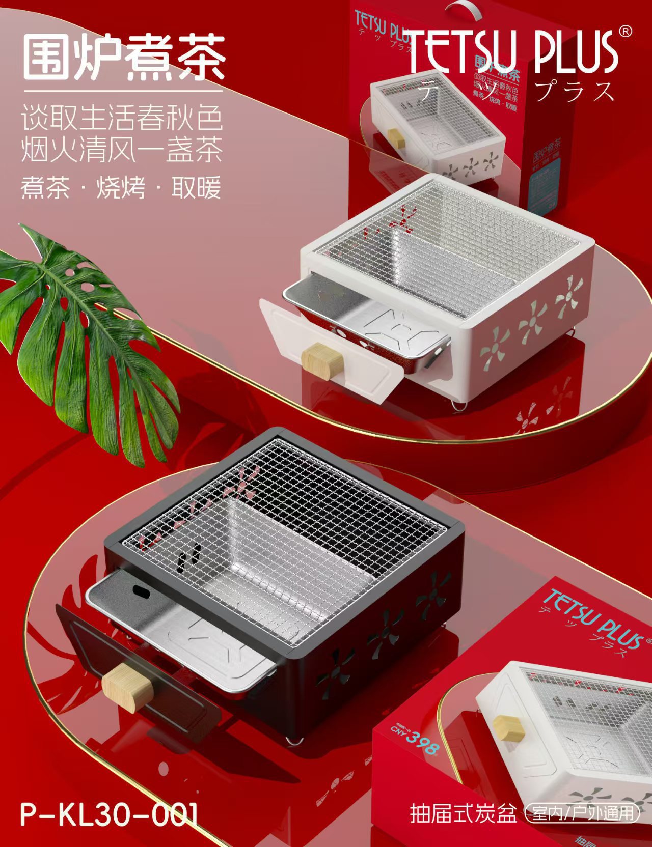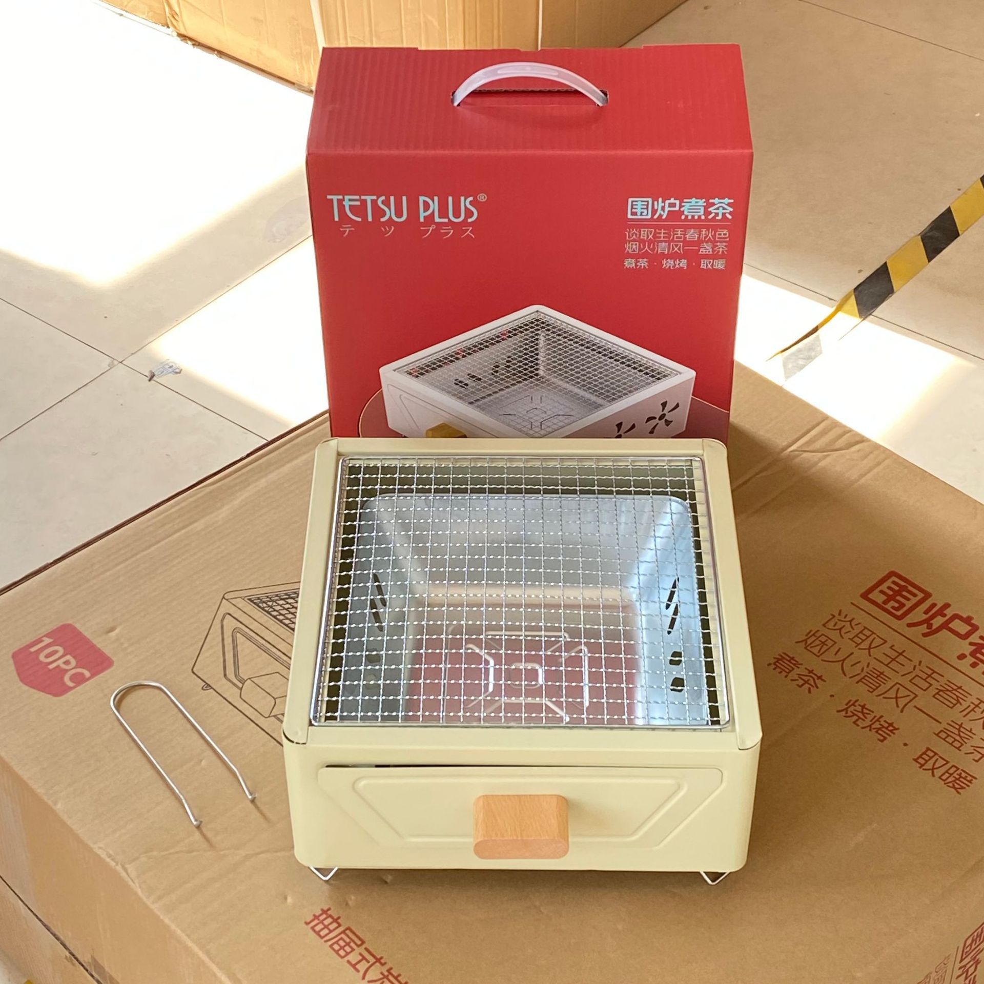 户外露营烧烤炉围炉家用庭院便携木炭烧烤架方形煮茶易清洗抽屉炉