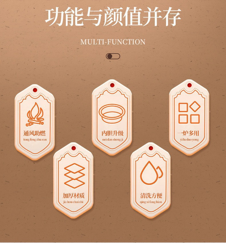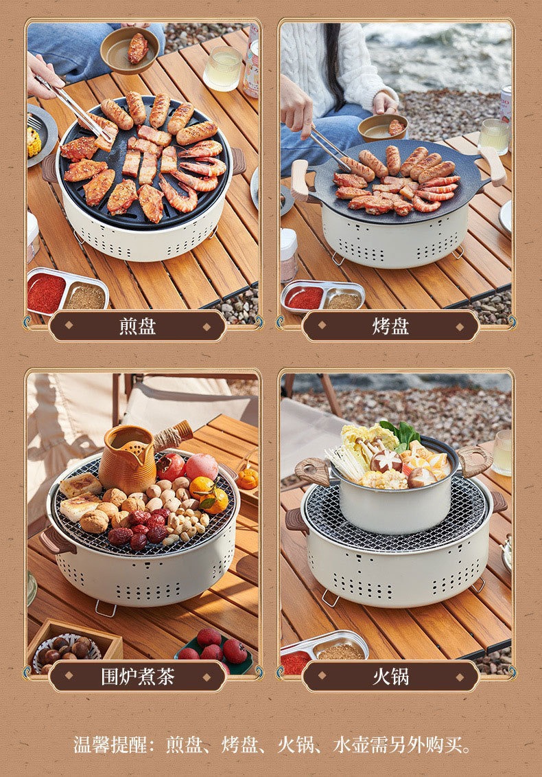 功能 组装,多功能,便携,折叠,无烟,防风,可拆卸,易清洗,防锈,不粘,无涂层