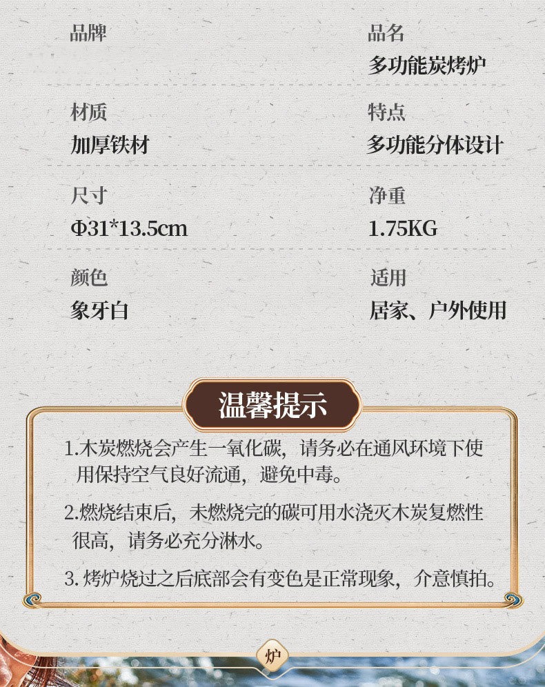 规格(长*宽*高) 带立足防烫【扬子围炉-01】,带立足防烫【山水间围炉】,带支撑架【扬子围炉-02】,带支撑架【扬子围炉】,白色【抽屉式围炉】,黑色【抽屉式围炉】