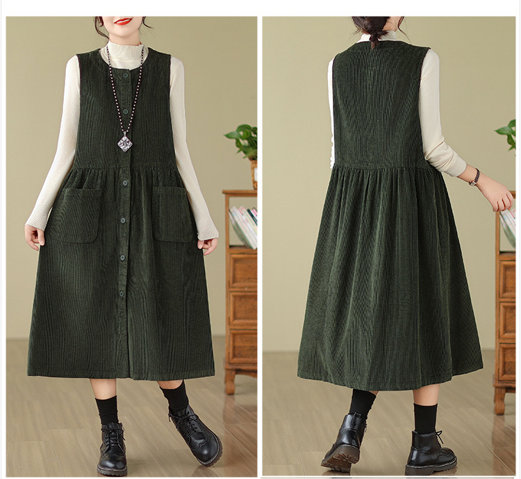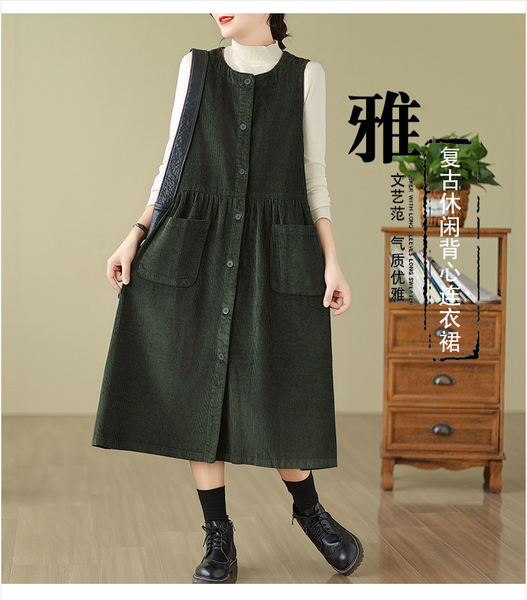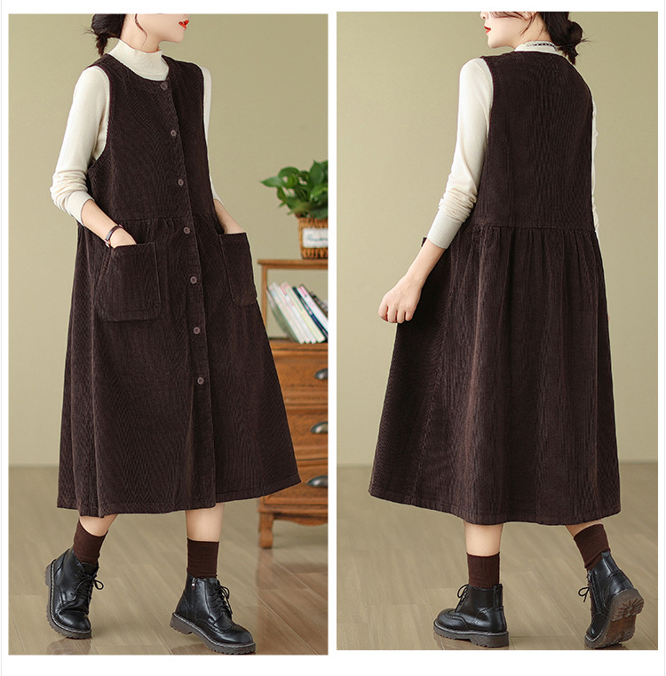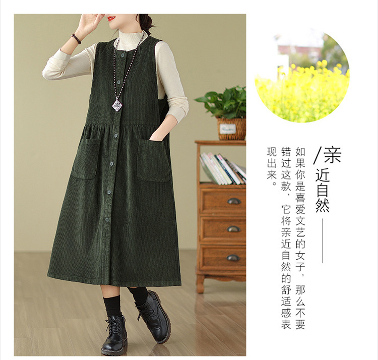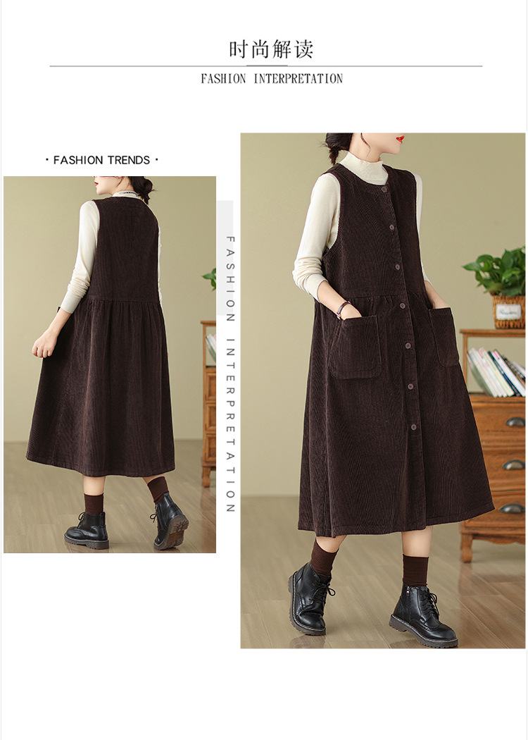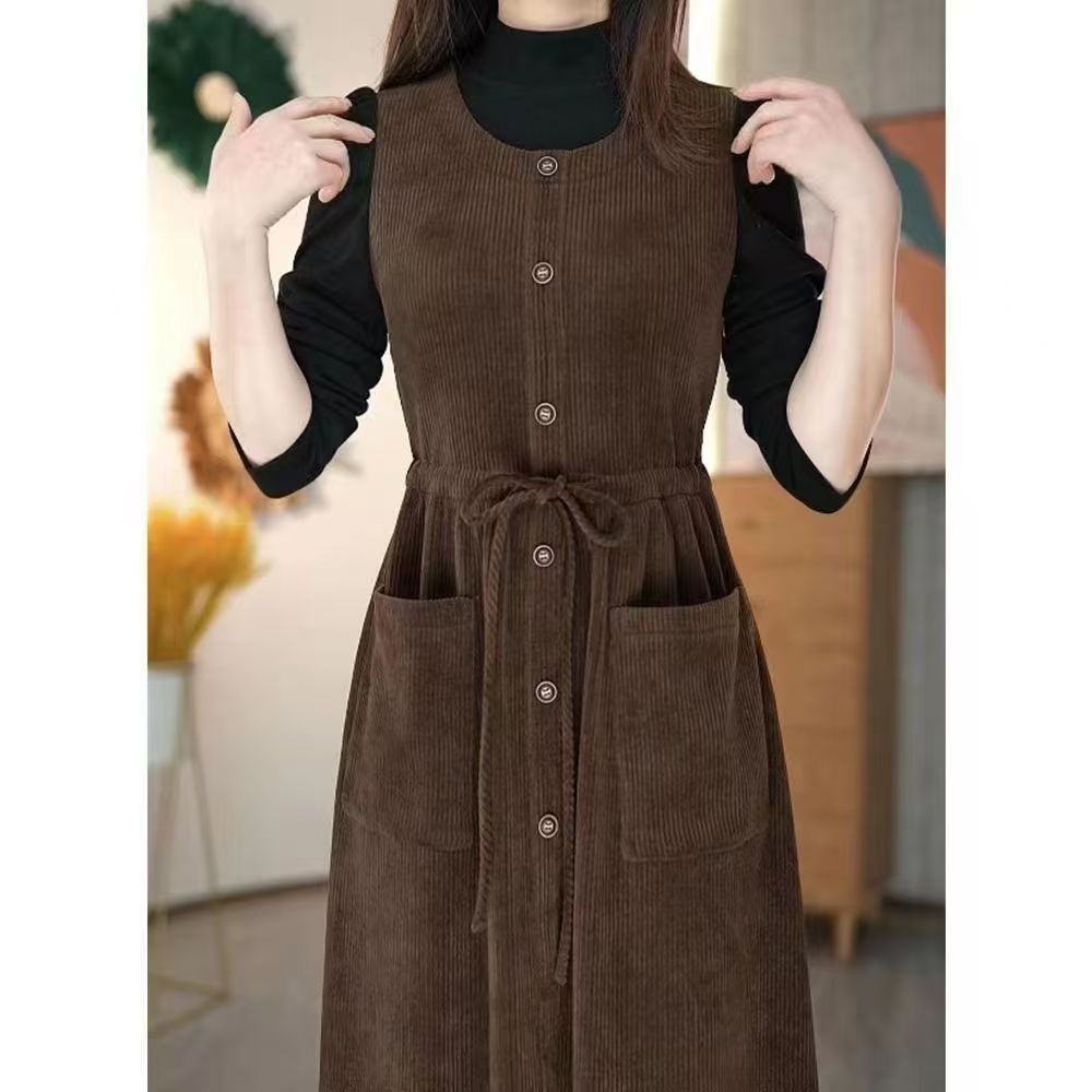 実拍図秋冬ワンピースコーデュロイベストスカートファッションゆるい減齢高級女装